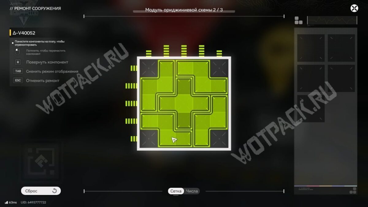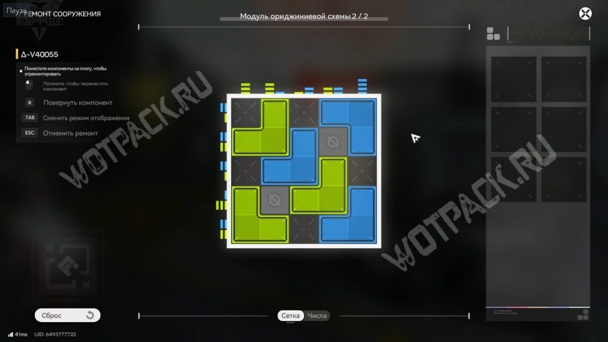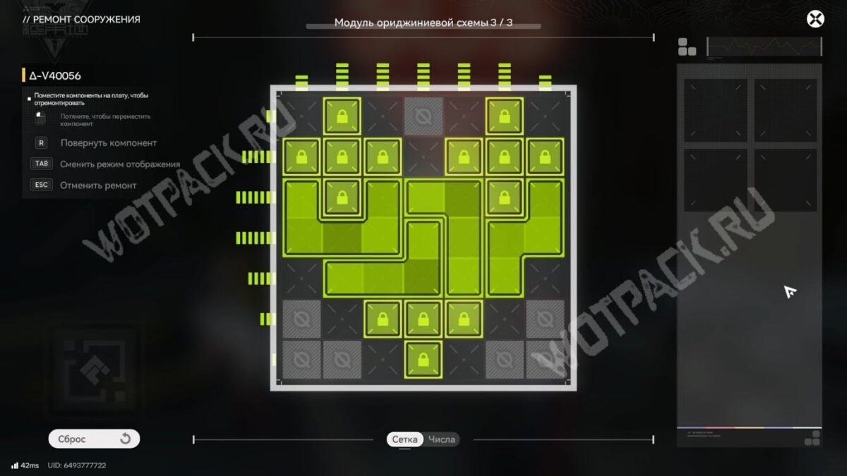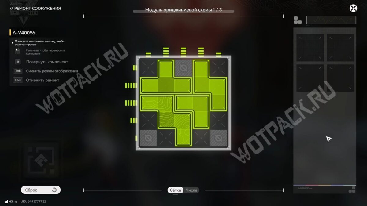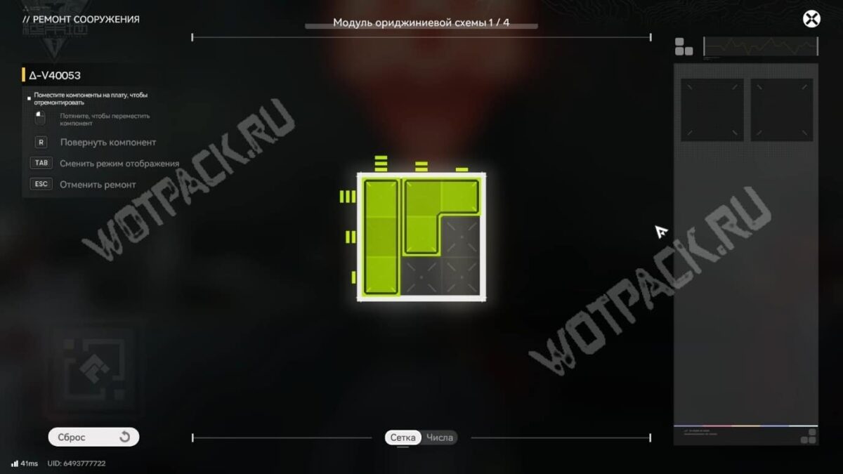 Собрав все компоненты, подойдите к запертым воротам и взаимодействуйте с переключателем. Разместите четыре фигуры на плату под названием «Сменить» так, чтобы не осталось свободных клеток.