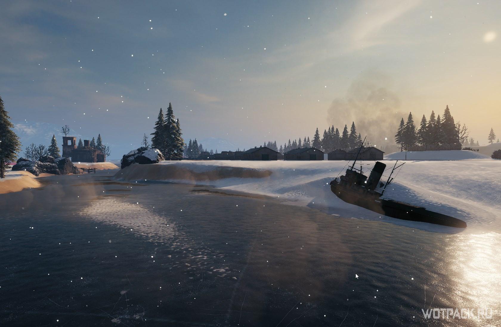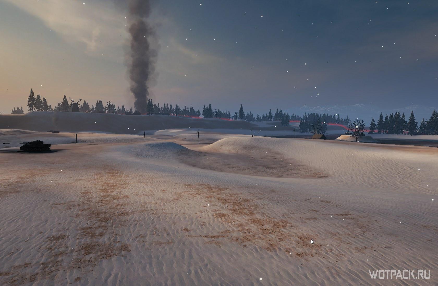 На карте полно прострелов, поэтому тяжам и медлительной технике здесь сложно будет укрыться от навязчивого фокуса САУ и просто любителей посидеть на базе. Особенность карты (во всяком случае на время тестирование) стал снег, который не просто лежит на земле, а сыпется с неба. Раньше разработчики отказались от погодных эффектов в «больших танках» на ПК.