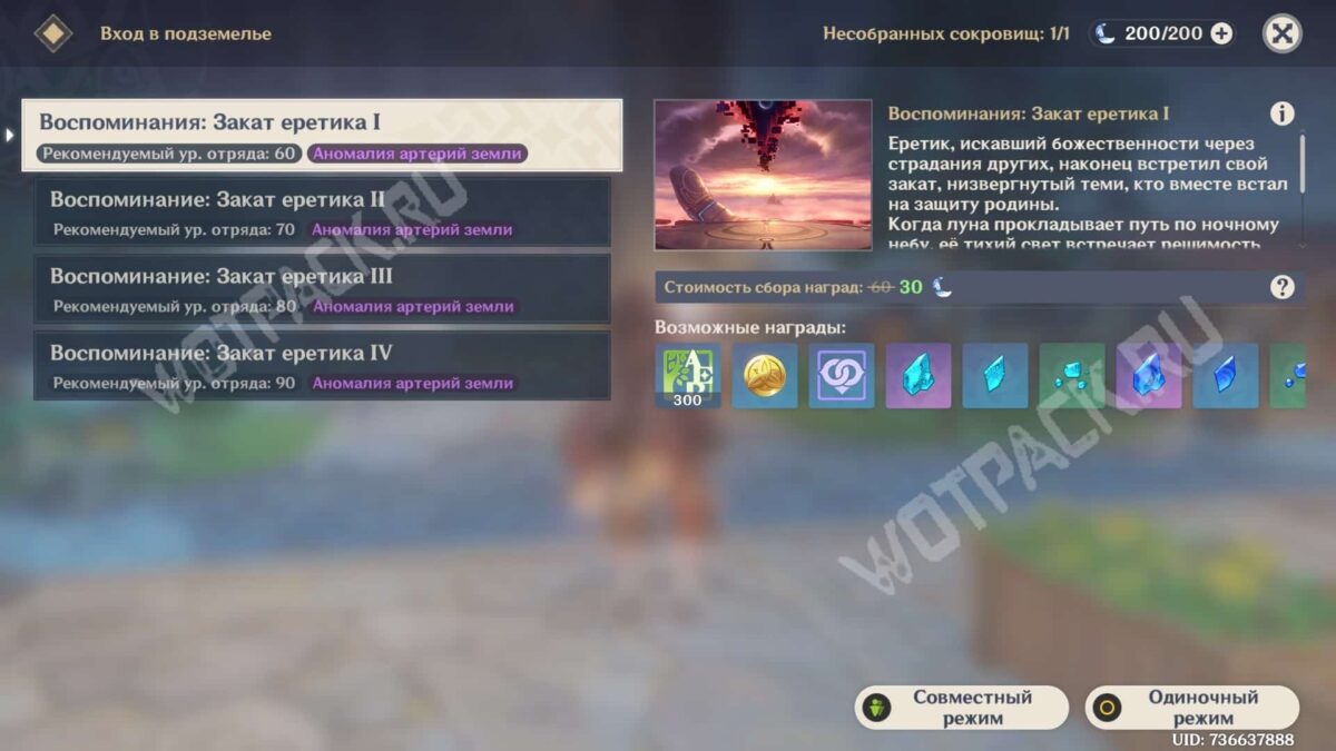 - пройти главу сюжета Архонтов «Истинная луна», затем посетить данж еженедельного противника — Еретика ложной луны;