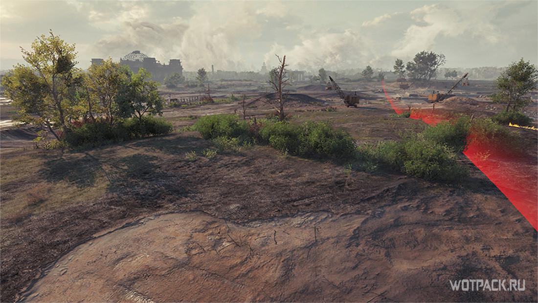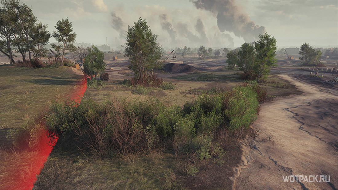 Открытый участок карты, с небольшими ложбинами и кустами, обеспечивающими единственную защиту легким танкам. Поэтому здесь есть варианты, как для активного, так и пассивного подсвета противника.