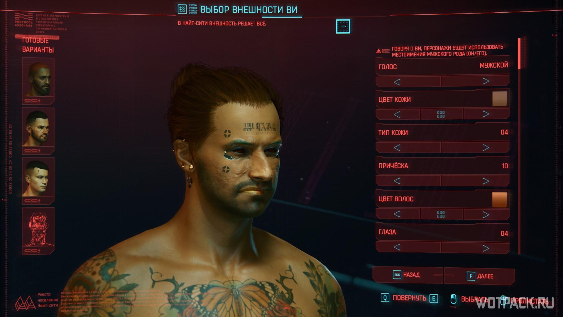 Одним из очевидных достоинств Cyberpunk 2077 является детальный и качественно реализованный редактор персонажей. Многочисленные ползунки и переключатели позволяют видоизменить практически каждую часть тела, в том числе, половые органы. Помимо естественных параметров имеется ряд декоративных украшений, в частности, тату и пирсинг.