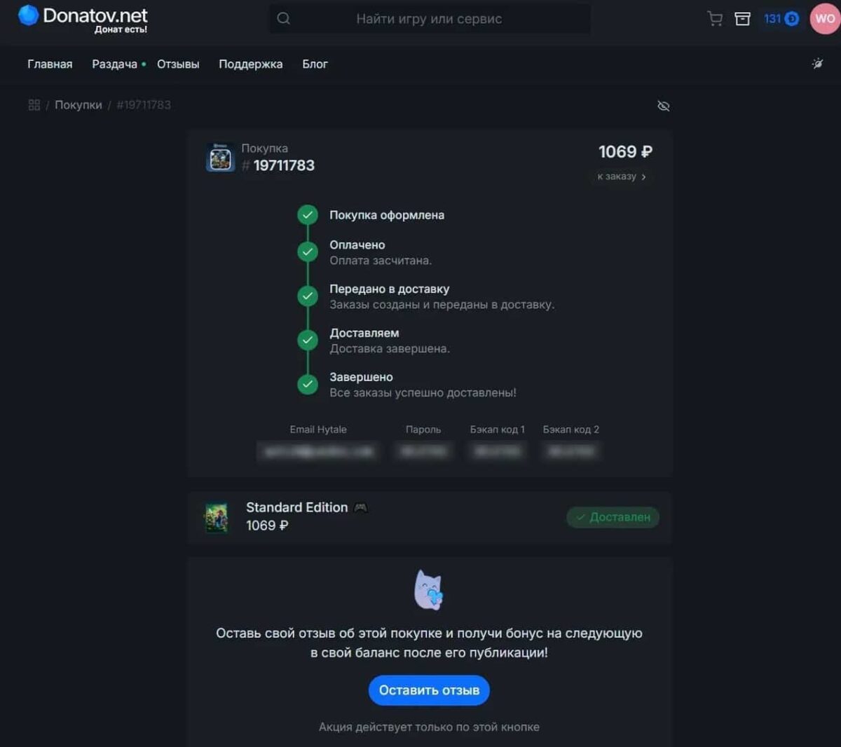 Для покупки любой версии Хайтейла можно обратиться к платформе donatov.net. Сервис предлагает привлекательные региональные цены, которые ниже, чем у разработчиков. Оплатить можно любой российской картой, а процесс приобретения займет всего несколько минут: