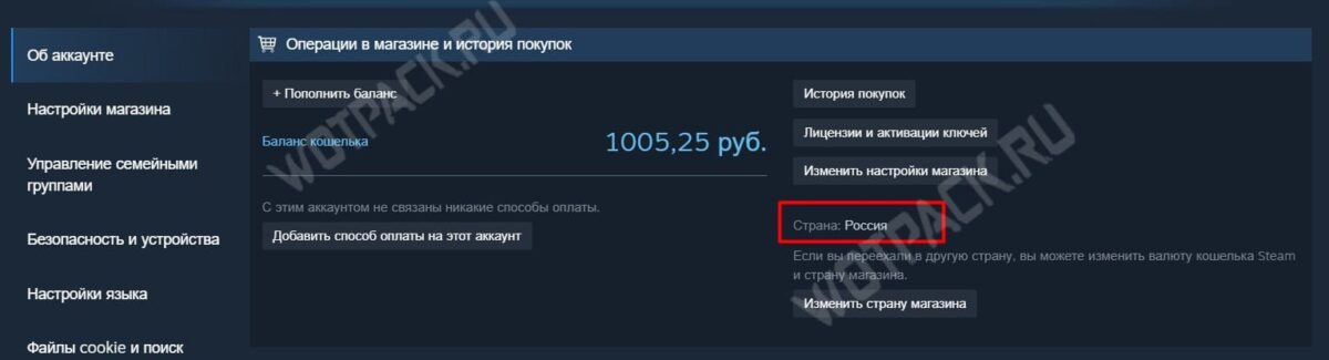 - В информации об учетной записи посмотрите на раздел «Операции в магазине и история покупок». В правой части этого окна указана страна аккаунта.