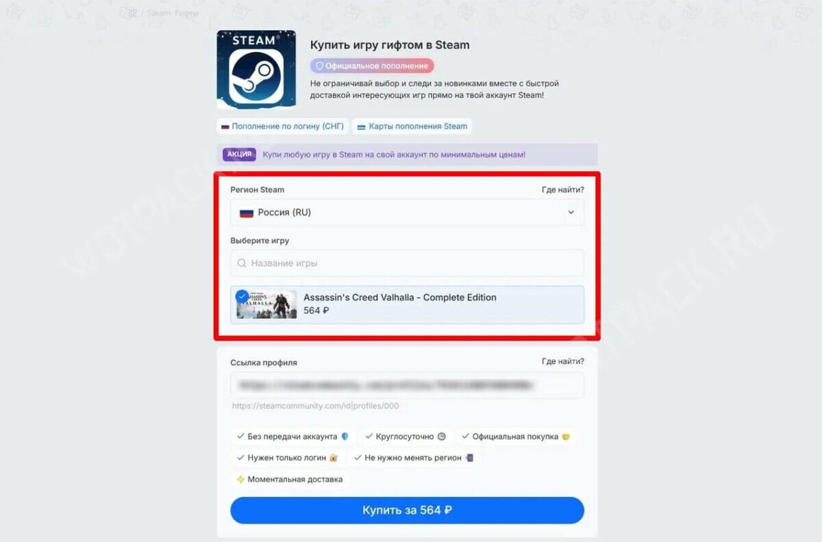 В 2026 году приобретение игр в Steam с российского аккаунта всё ещё может вызывать сложности: не все способы оплаты работают привычно, а часть тайтлов недоступна в RU-регионе. Из-за этого многие выбирают покупку гифтом — игру официально дарят внутри Steam, и она после принятия подарка сразу попадает в библиотеку.