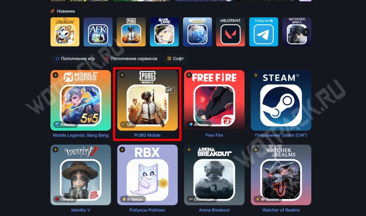 - Перейдите по ссылке выше или самостоятельно отыщите среди игр раздел с PUBG Mobile.