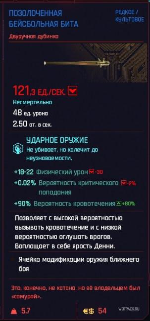 Элитное оружие ближнего боя – позолоченную бейсбольную биту, игроки в Cyberpunk 2077 могут получить достаточно легко. Для этого придется лишь выполнить несколько квестов. Возможно сносить головы битой – это не самая интересная тактика боя, из числа представленных в игре, но все же очень эффективная, если обзавестись годным экземпляром.