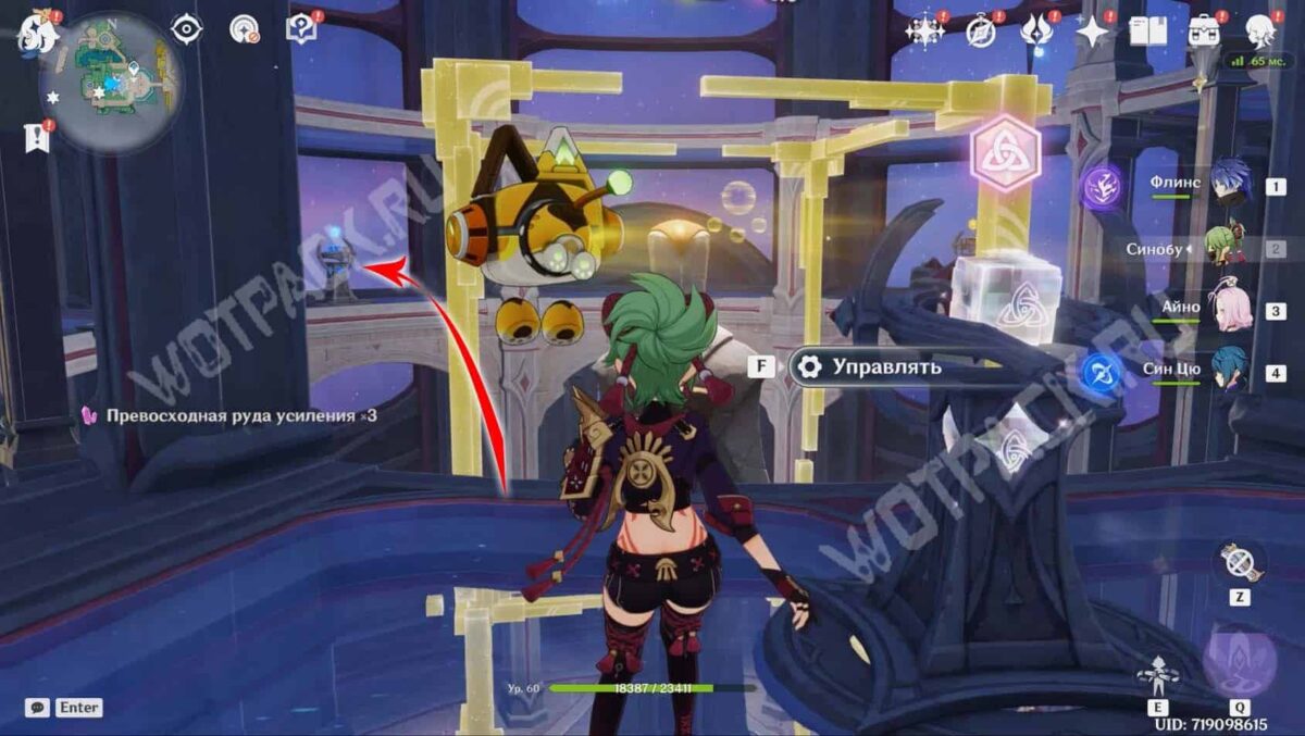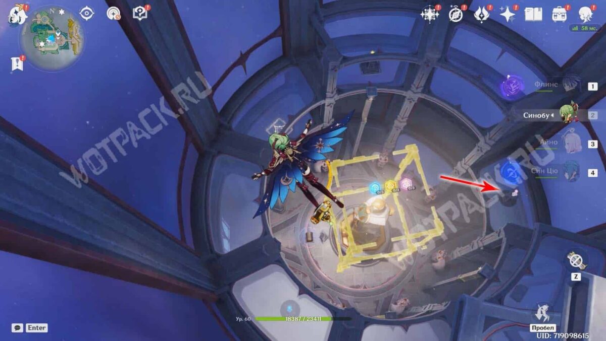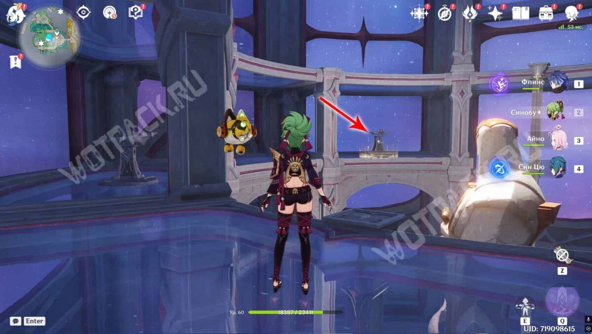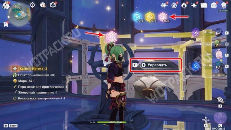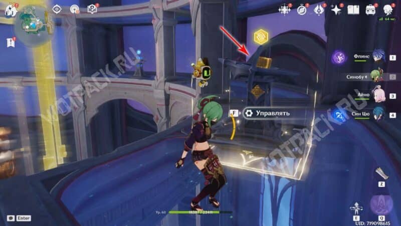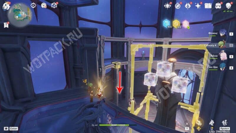 Пройдите вперед и активируйте последний метатель с Гео стихией. Когда все кубы будут перемещены в выставочный стенд, статуя освободится от желтых рамок, а внизу снимется печать с сокровищницы.
