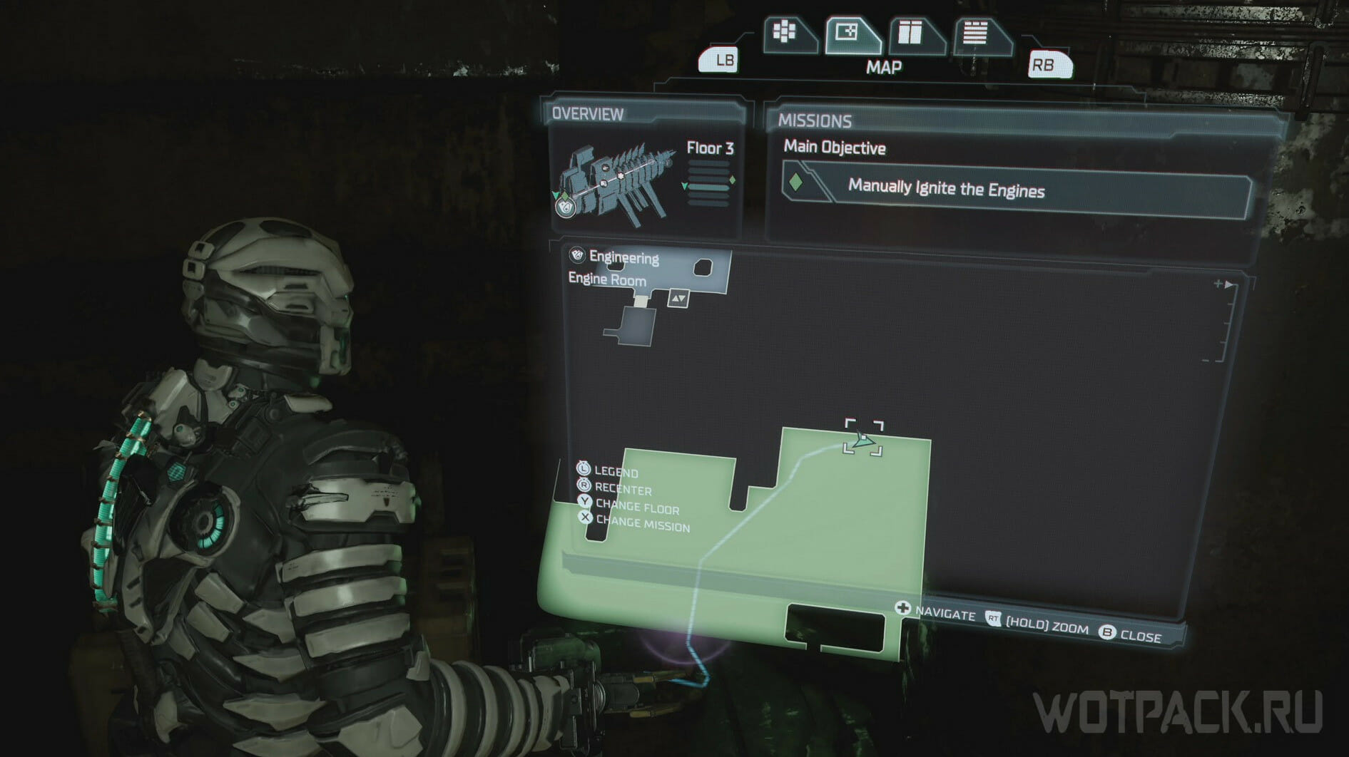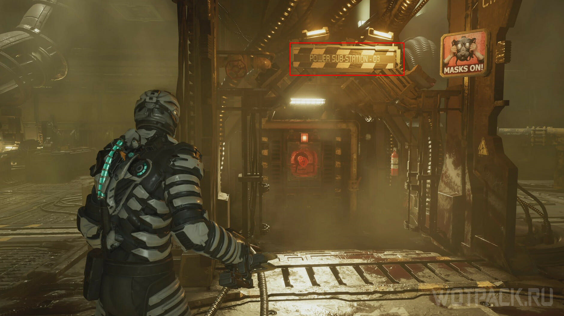 В третьей главе, когда Айзек одолеет огромные щупальца и пройдет через карантинный отсек обеззараживания, пройдите до грузового лифта, чтобы подняться. Решив головоломку с вентиляторами, нужно пройти через пораженную область для попадания в машинное отделение [Engine Room].