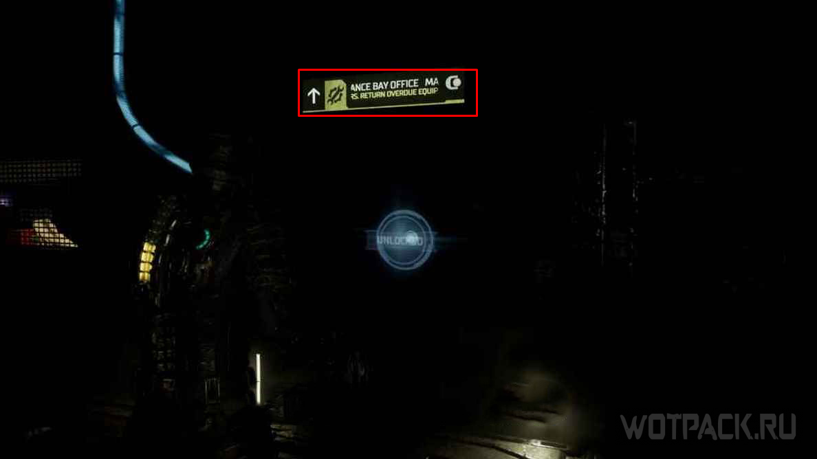 После подачи питания нужно вернуться вниз, также воспользовавшись лифтом. Отыщите комнату офиса технического обслуживания, она находится в правом нижнем углу отсека. Пройдите в помещения для нахождения сюжетного предмета.