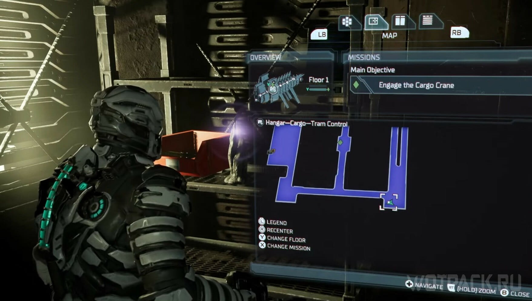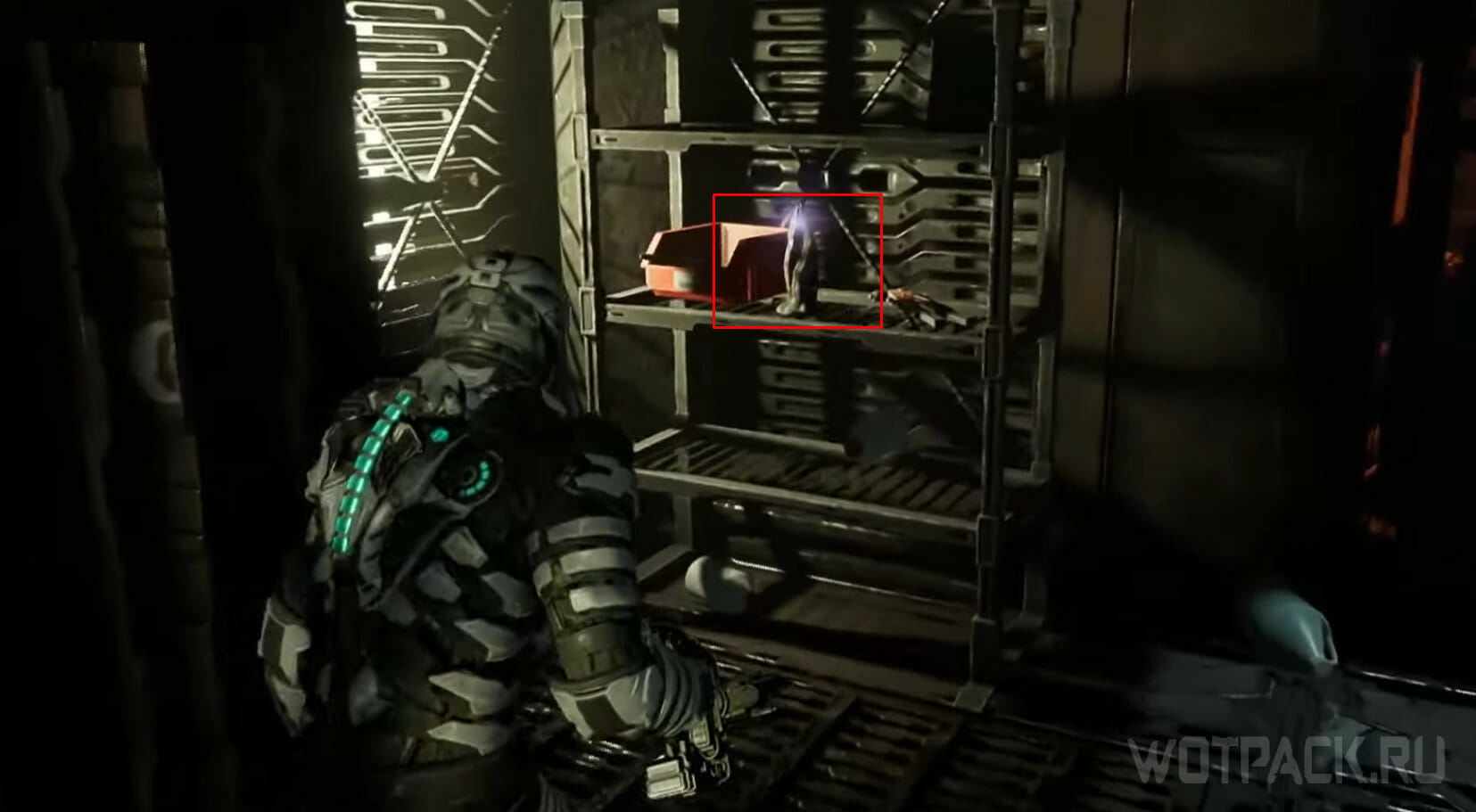 В предпоследней главе нужно добраться до грузового отсека, где и появится задача на использование крана. Идите в юго-восточную часть блока. Осмотрите это место и справа найдете металлические полки, на которых и стоит последний фрагмент обелиска.