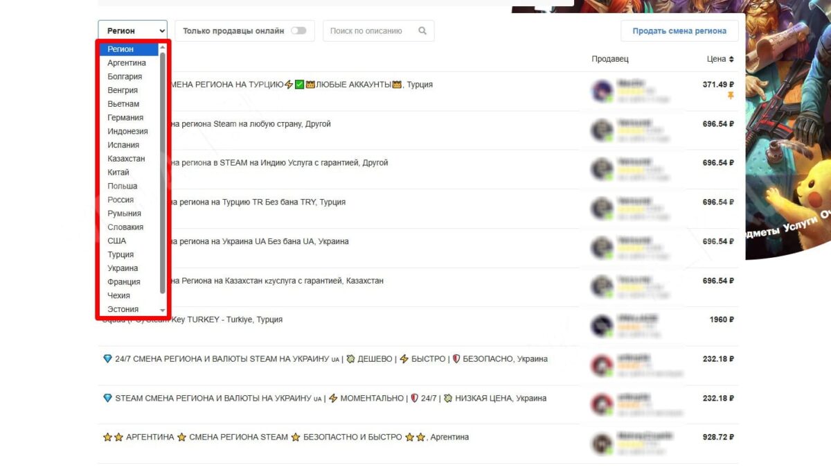 Если не хотите разбираться с выпуском зарубежных карт и вникать в правила платформы, смена страны аккаунта Steam легче всего осуществляется при помощи посредников на торговых площадках. Из наиболее распространенных сервисов можно выделить следующие: