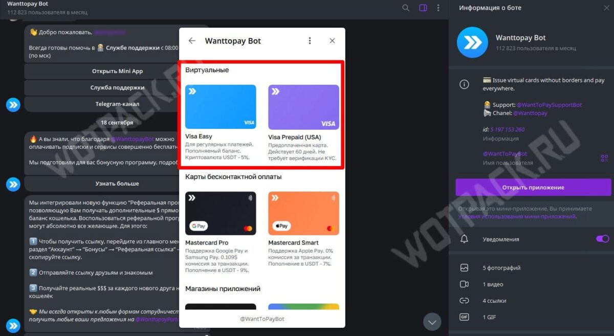 Основная сложность заключается именно в получении карты. В 2025 году большинство казахстанских банков не открывает счета удаленно, поэтому остаются исключительно варианты с виртуальными картами. Множество сервисов предлагает данные услуги, один из них — WantToPay: