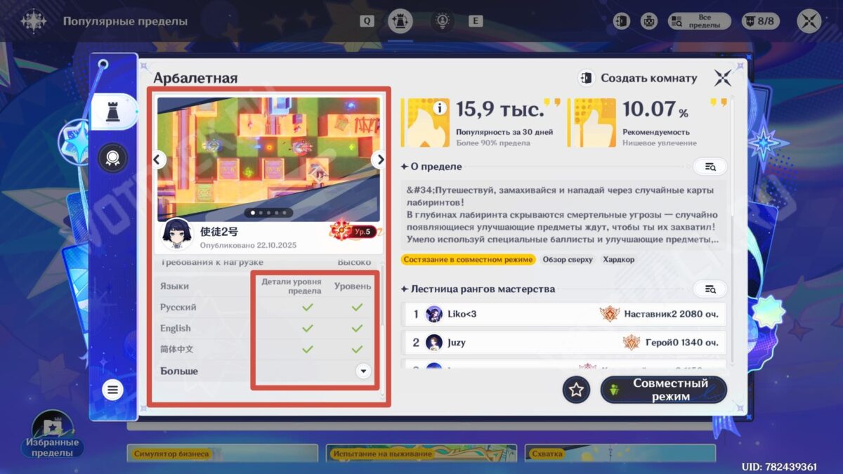 В Астральном пределе представлен огромный список активностей, которые разнообразят приключения в Тейвате. Как правило, они поддерживаются несколькими языками, однако при запуске некоторых из них вместо букв в интерфейсе отображаются иероглифы. Такое происходит несмотря на наличие описаний и инструкций на английском, что приводит в замешательство и затрудняет игровой процесс.