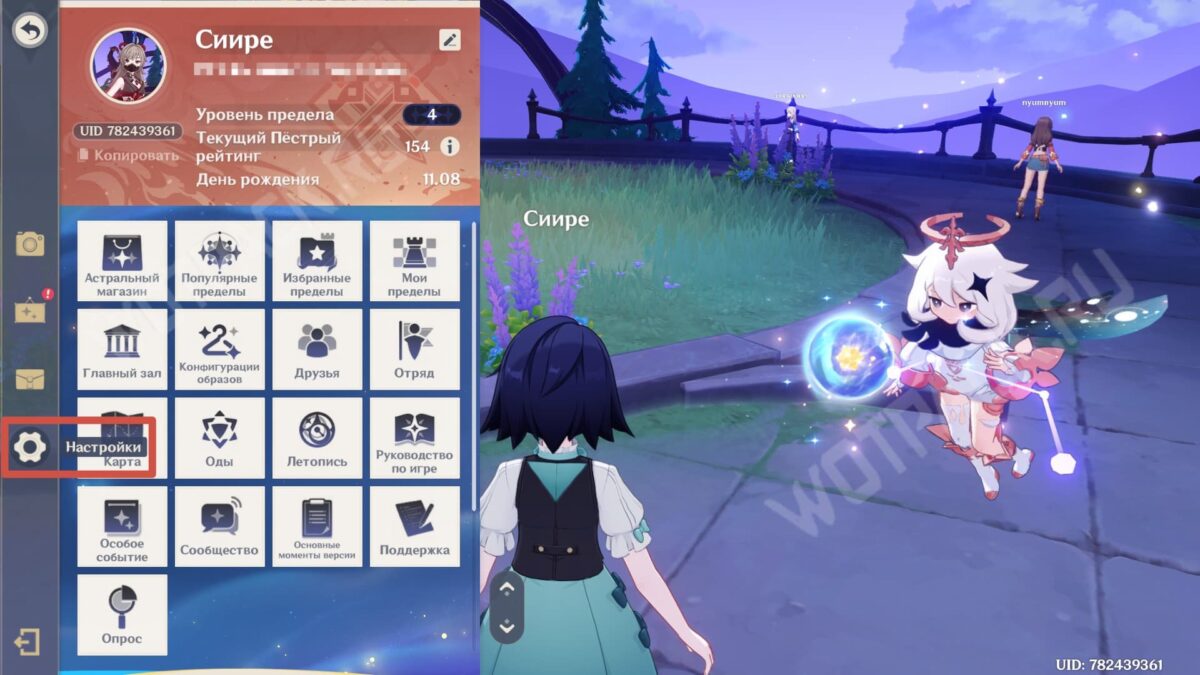 - Откройте меню Паймон и нажмите на символ шестерёнки.