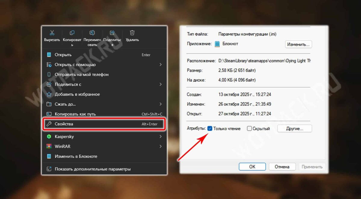 Советуем поставить в свойствах файла атрибут «Только чтение» после изменения. Также стоит обратить внимание на него, если не получается сохранить новые данные.