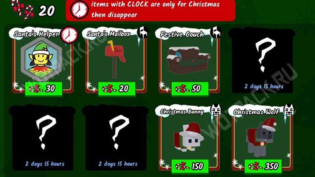 Рекомендуем в первую очередь купить за 30 конфет ивентовый класс Помощник Санты (Santa`s Helper) для увеличения количества выпадающих леденцов.