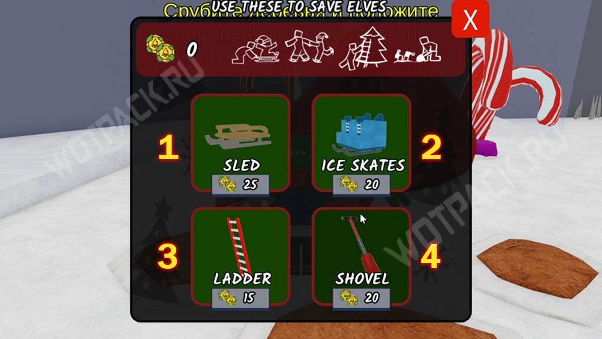 Для спасения НПС обязательно понадобятся коньки, лестница и лопатка.