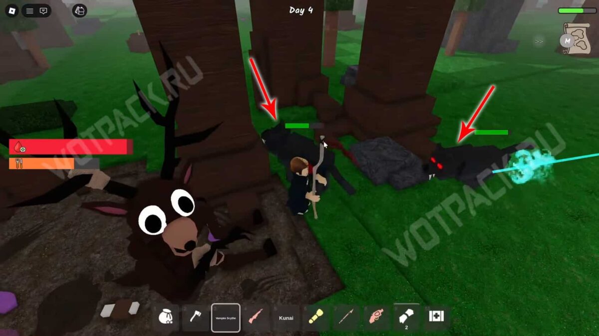 Советуем взаимодействовать с лесным жителем в светлое время суток и переходить к фазе с нападением диких зверей в начале дня. Так получится избежать встречи с сильными ночными противниками — совой и бараном.