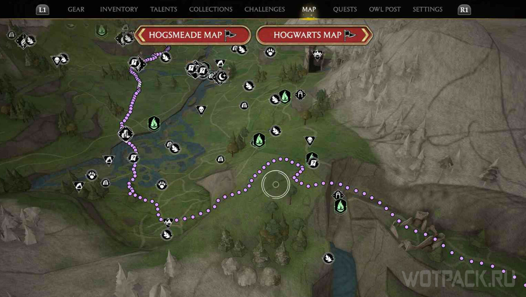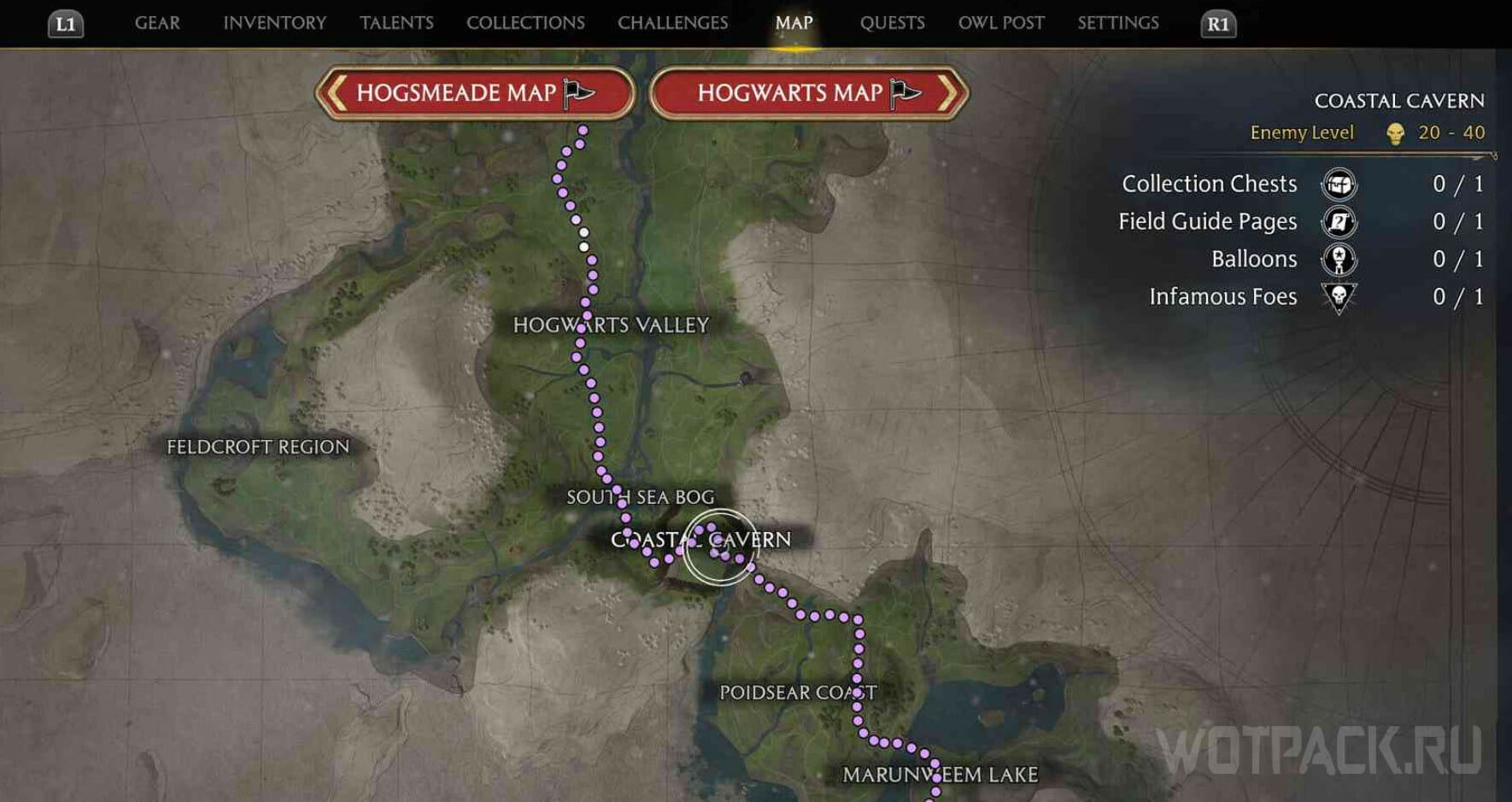 Отправиться на побережье Пойдсир в Хогвартс: Наследие можно сразу же как сможете покинуть замок и исследовать мир без ограничений. Самый простой вариант добраться до нужного места – поставить метку на южном краю карты, а затем следовать за фиолетовыми точками.