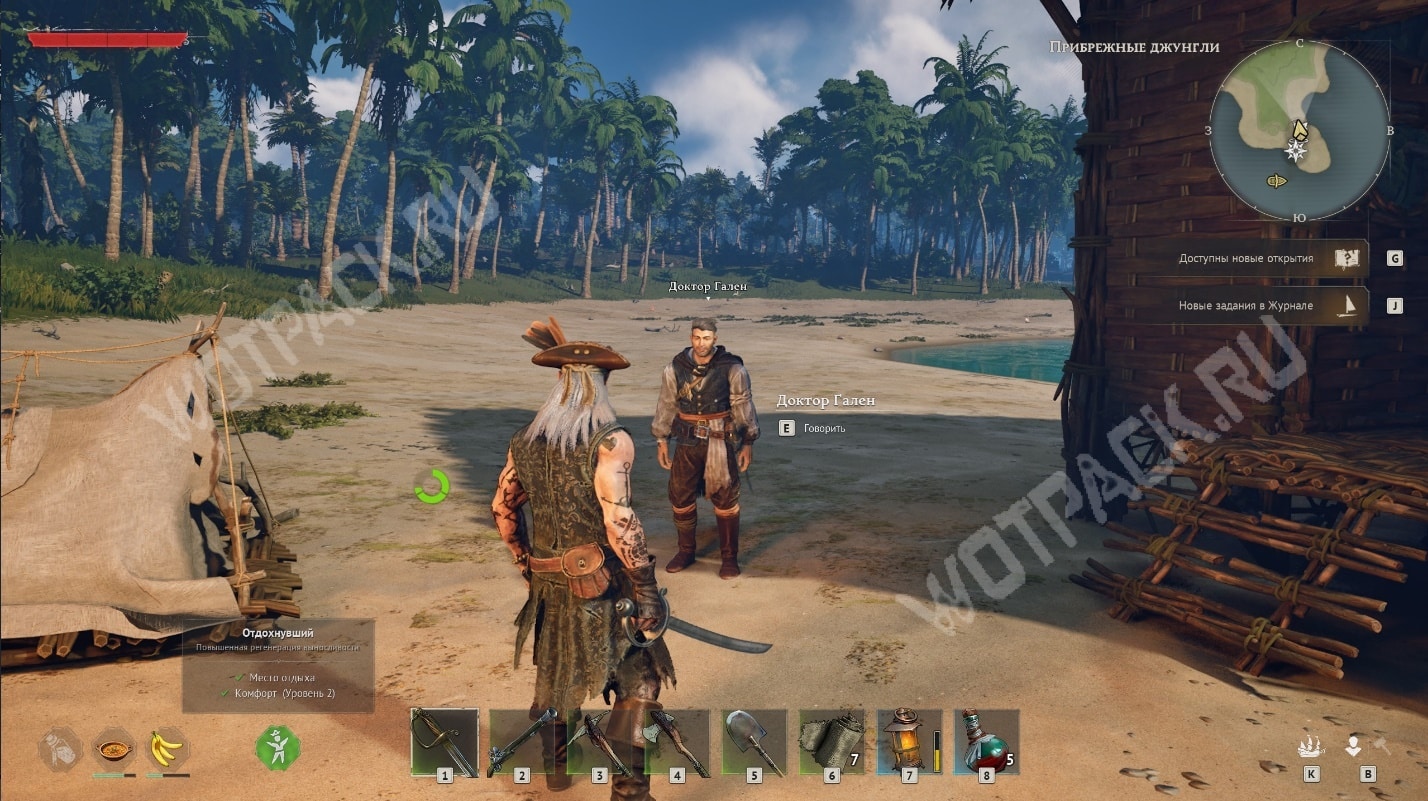 Строить порт предстоит в рамках квеста «Мои приключения на море», который выдает доктор Гален после завершения миссии «Мне нужна лодка побольше». Как только раздобудете кеч, сможете приступить к его улучшению.