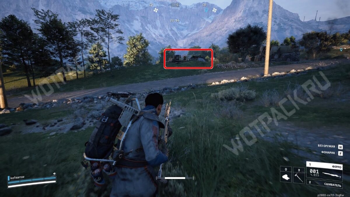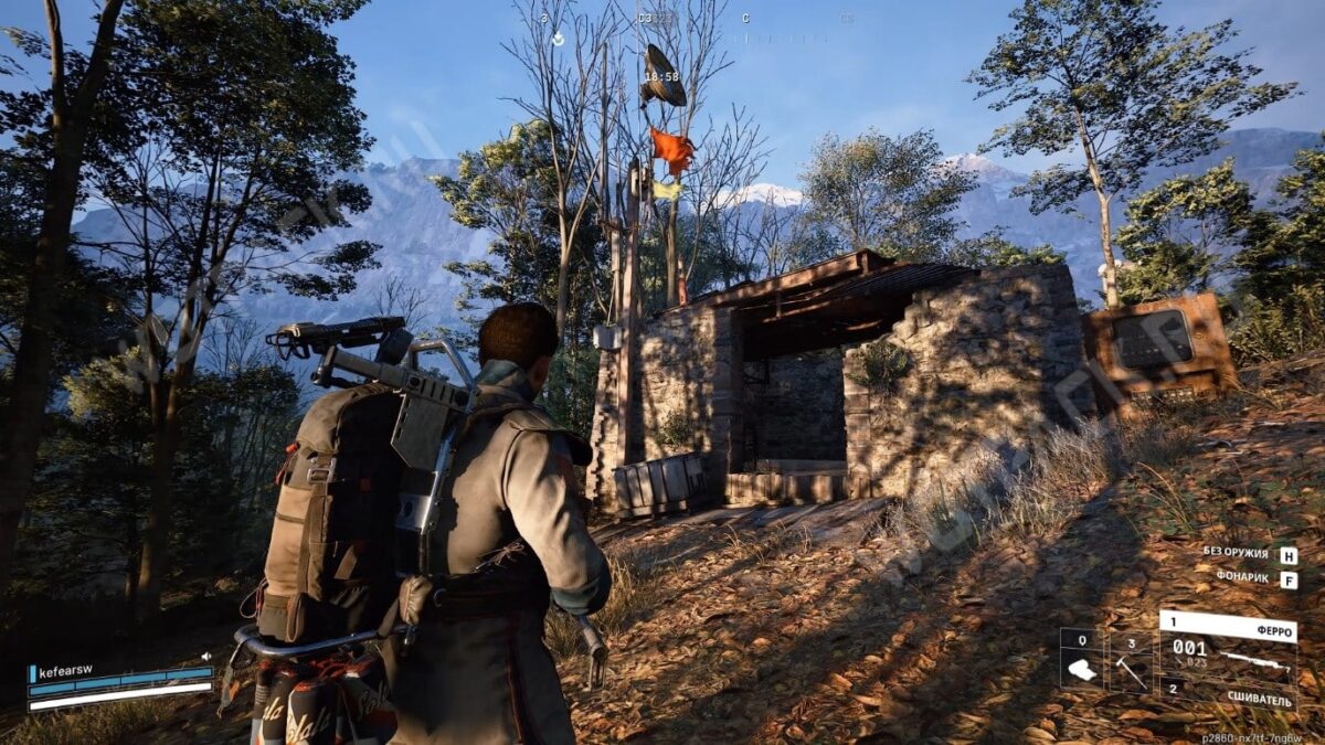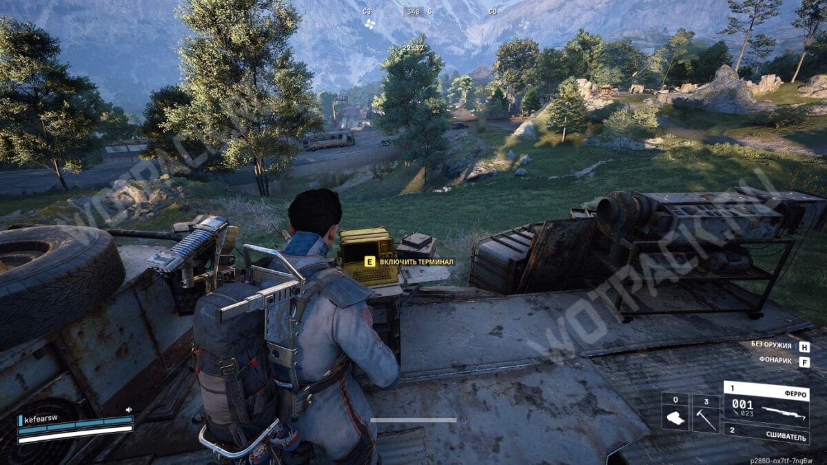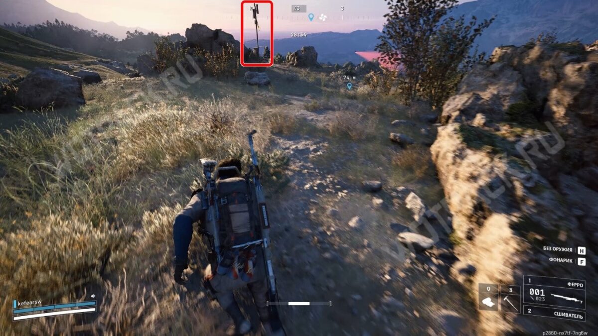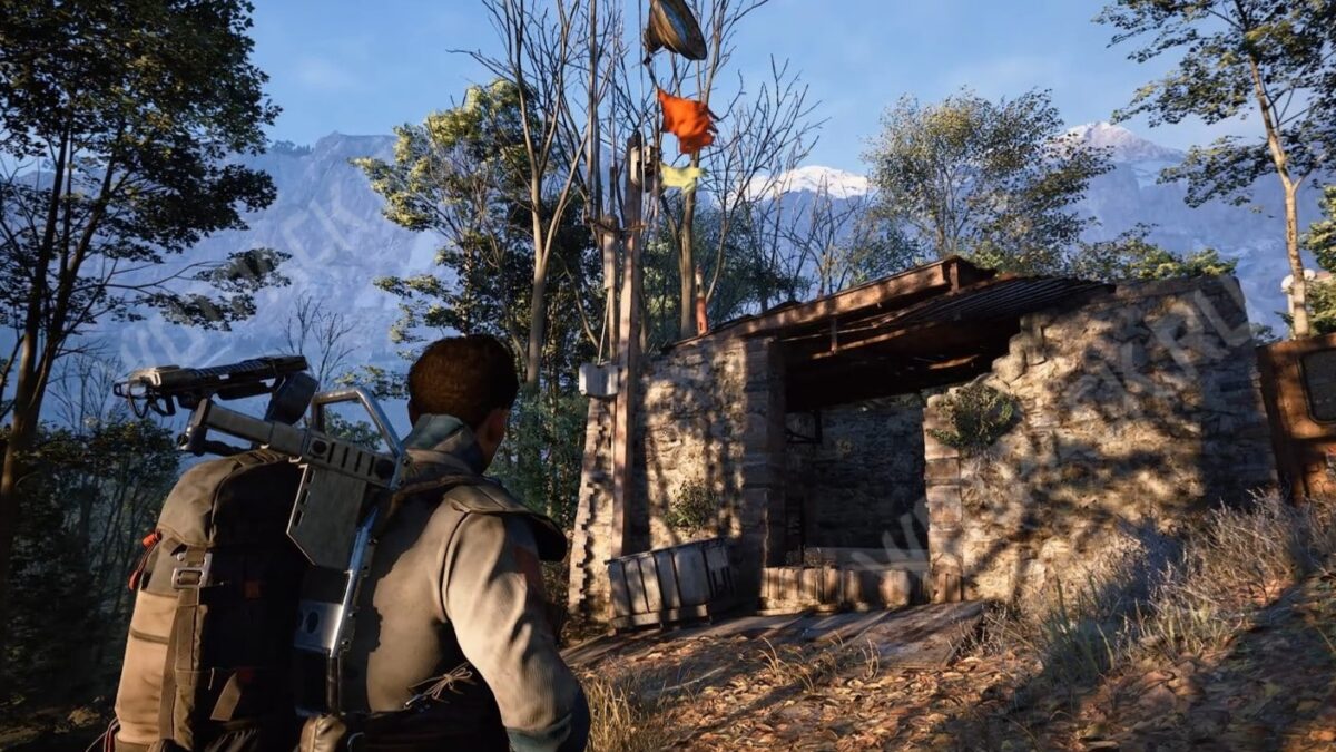 Вокруг прогалины зверолова расположен небольшой, но довольно густой лесок, из-за чего искать ориентиры здесь сложнее. Нужный пункт находится на крыше полуразрушенного рейдерского строения. На ней виднеется тарелка антенны и пара флагов.