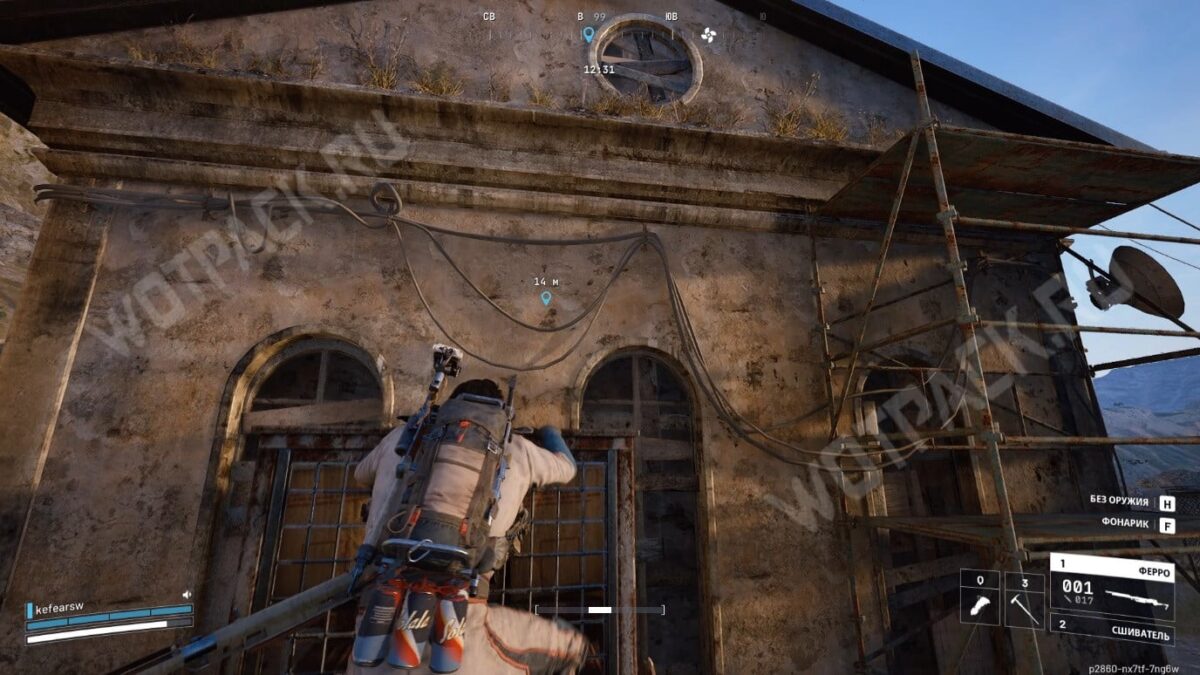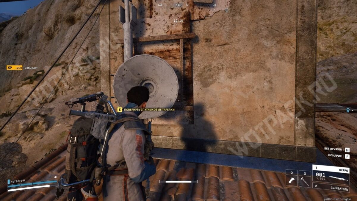 Попасть к спутниковым тарелкам можно с помощью контейнеров и лесов с неразрушенного торца здания. Просто вскарабкайтесь по ним и активируйте точку взаимодействия на крыше.