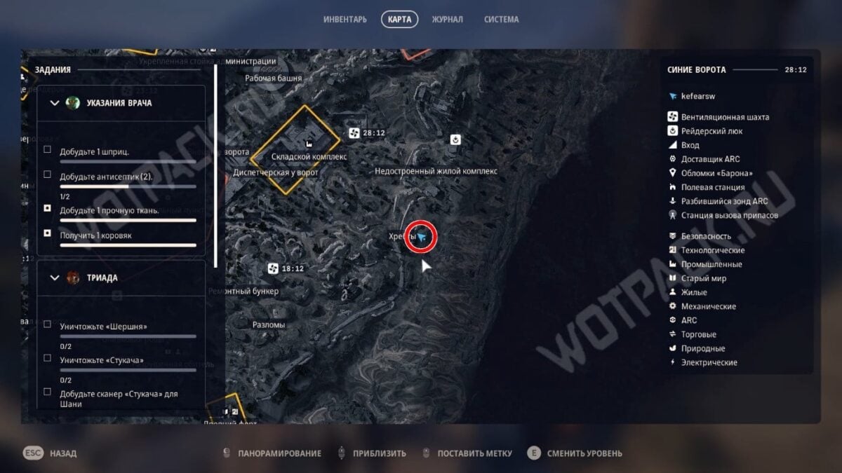 Порядок выполнения целей не важен и зависит от места появления. Как только окажетесь в Синих воротах, определите своё положение и проложите маршрут к ближайшей локации. От неё, двигаясь по периметру карты, можно посетить все ключевые точки и закончить квест за раунд.