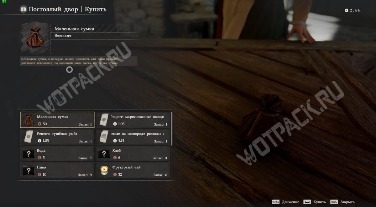 Дополнительные слоты для инвентаря дают сумки. В зависимости от вместимости их можно купить или получить в награду за квест: