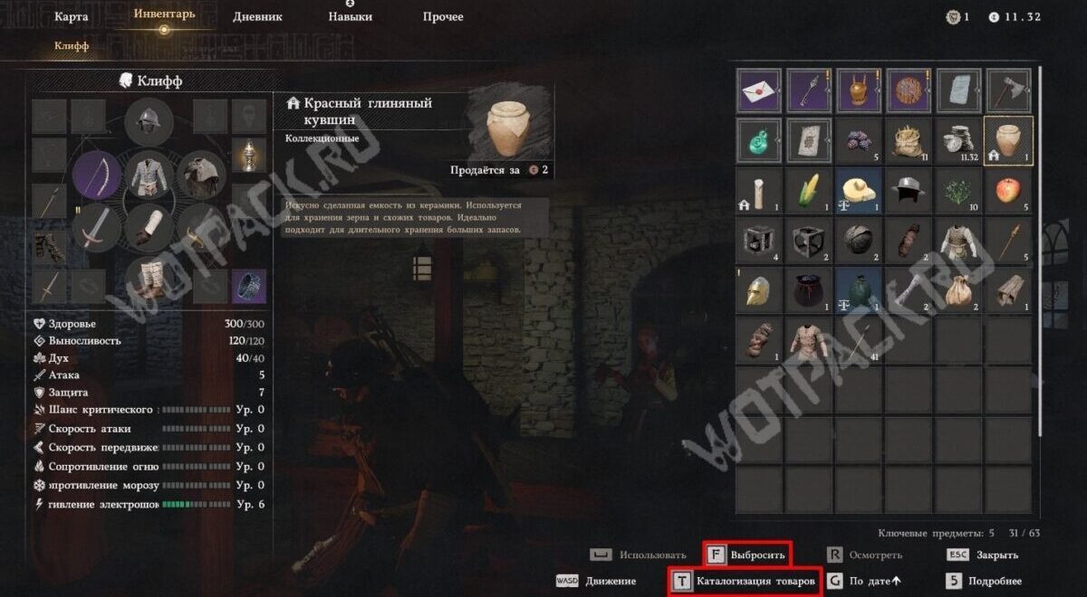 Грамотная сортировка снаряжения и использование дешевых способов его расширения позволит не нуждаться в свободных слотах и собирать все необходимые предметы.