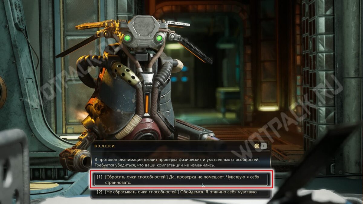 По окончании несанкционированного отпуска робот ВЭЛ предложит проверить умственные и физические показатели и сбросить очки способностей. За счет прохождения начальной миссии удастся оценить пользу первоначальных параметров и пересмотреть сборку для более эффективного выполнения квестов.