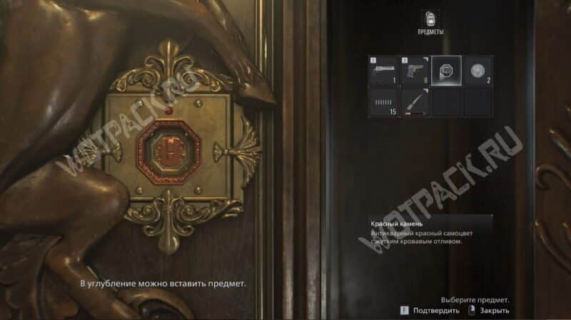 Вернитесь к гостиной в западном крыле и вставьте драгоценность в дверь с углублением.