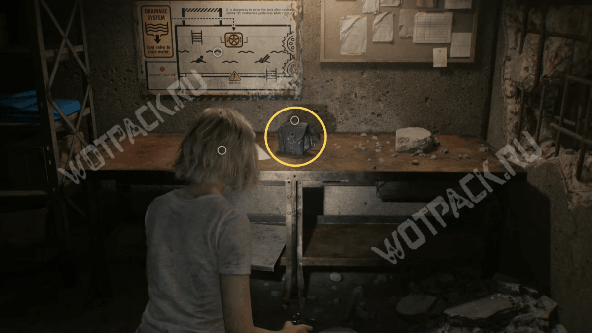 После отправляйтесь к регистратуре, что недалеко от столовой, и примените пропуск у двери с голубой панелью. Здесь сможете подобрать вторую набедренную сумку.