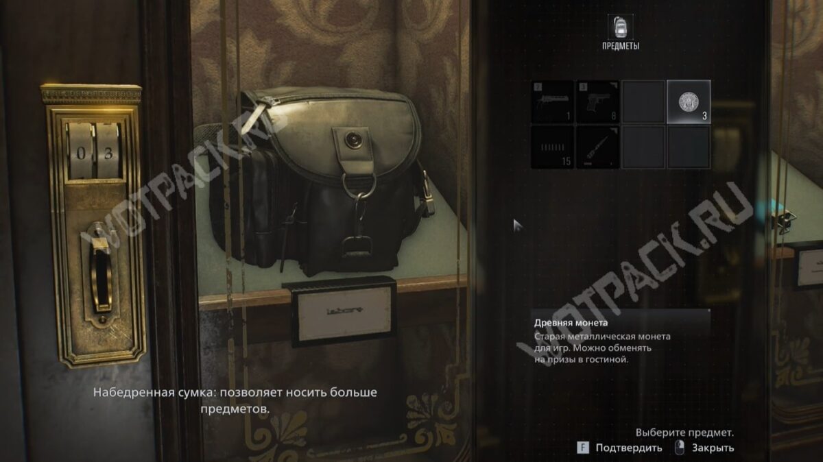 - По мере исследования локаций Грейс находит набедренные сумки. Используйте их, чтобы носить ещё больше предметов — каждая открывает два дополнительных слота.