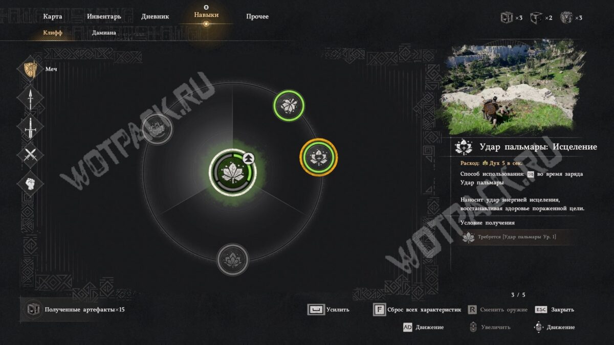 Используйте навык «Удар пальмары: Исцеление»