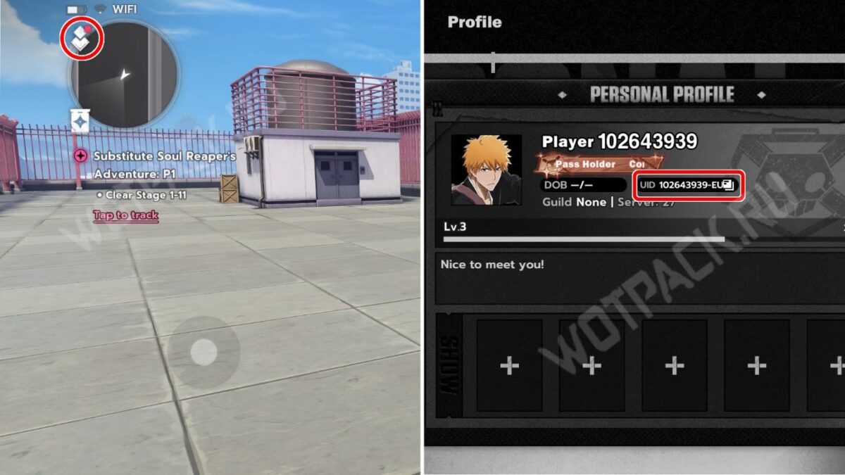 - Введите свой UID в соответствующее поле (его можно найти в меню профиля, нажав на иконку рядом с мини-картой). Вписывайте точно, как указано в игре, включая буквенное окончание.