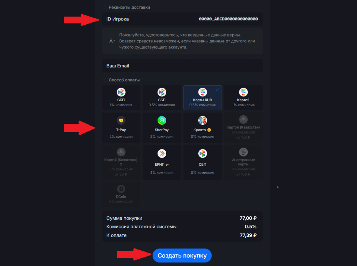 - Укажите желаемое количество премиальной валюты: от 600 до 138 000 единиц.