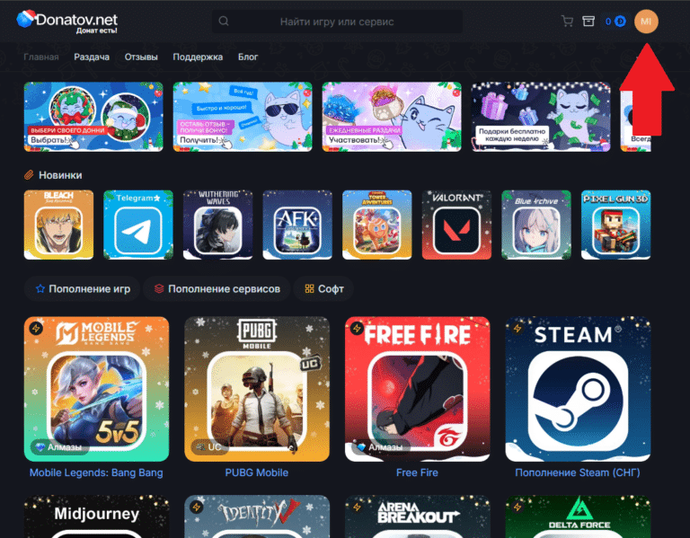 - Перейдите на donatov.net и зарегистрируйтесь, чтобы получать кешбек на другие покупки. Если учетная запись уже заведена, то авторизируйтесь на сайте, нажав кнопку «Войти» в правом верхнем углу.