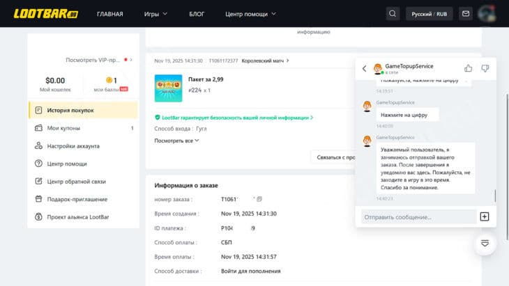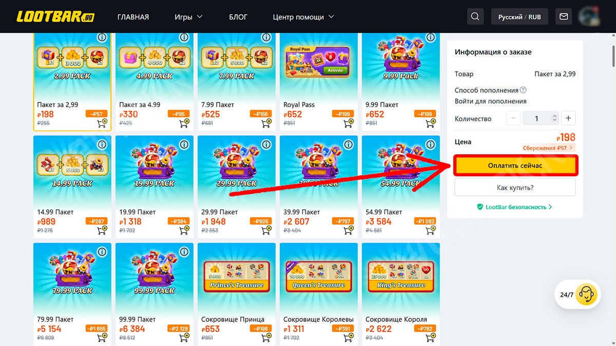 Одна из таких платформ — Lootbar.gg. Через сервис сможете купить любой пакет предметов или монет, однако, следует подготовиться к некоторым моментам: