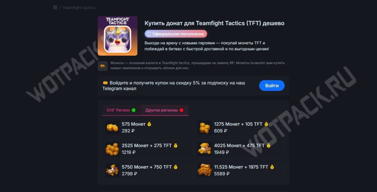 С подробной инструкцией и простым интерфейсом сайта с лёгкостью сможете купить монеты и задонатить на понравившиеся скины в ТФТ, обходя все региональные ограничения.