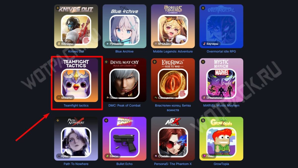 - На сайте donatov.net перейдите в раздел Teamfight Tactic.