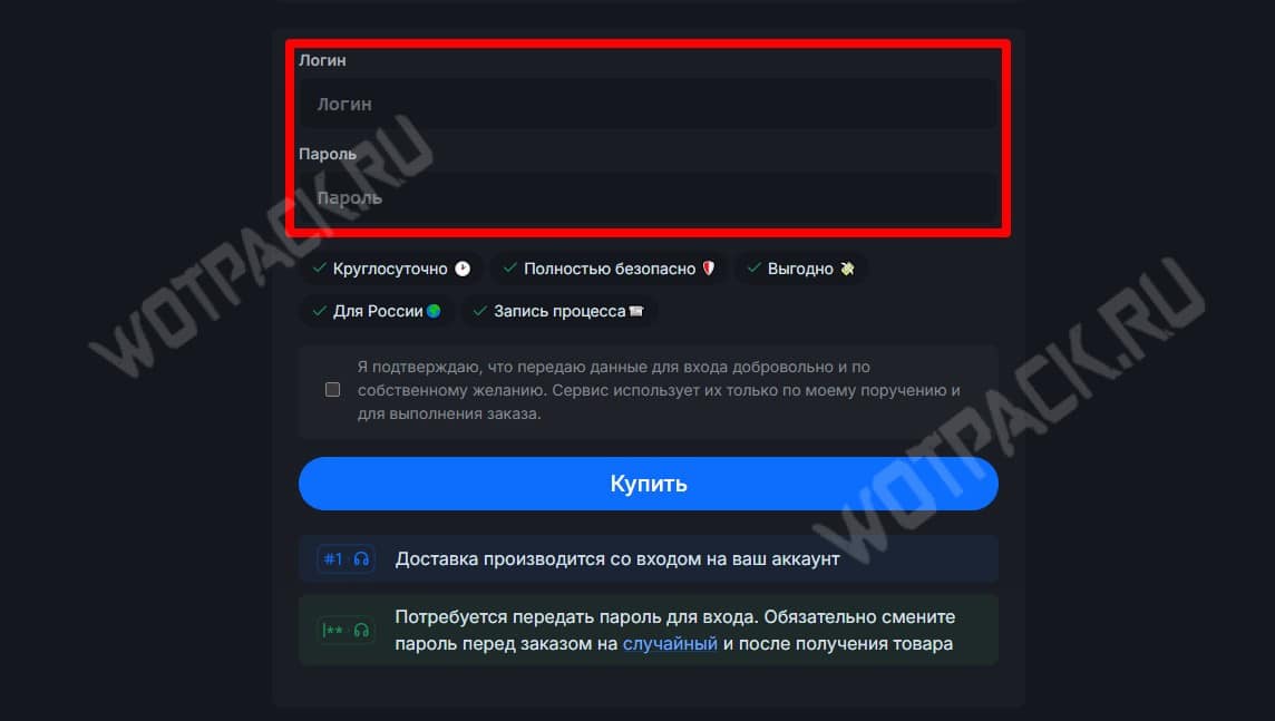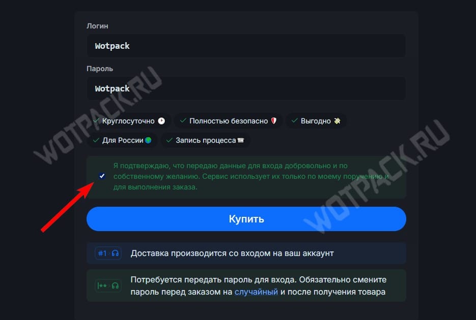 - Поставьте галочку о передаче данных для входа, после чего жмите «Купить».