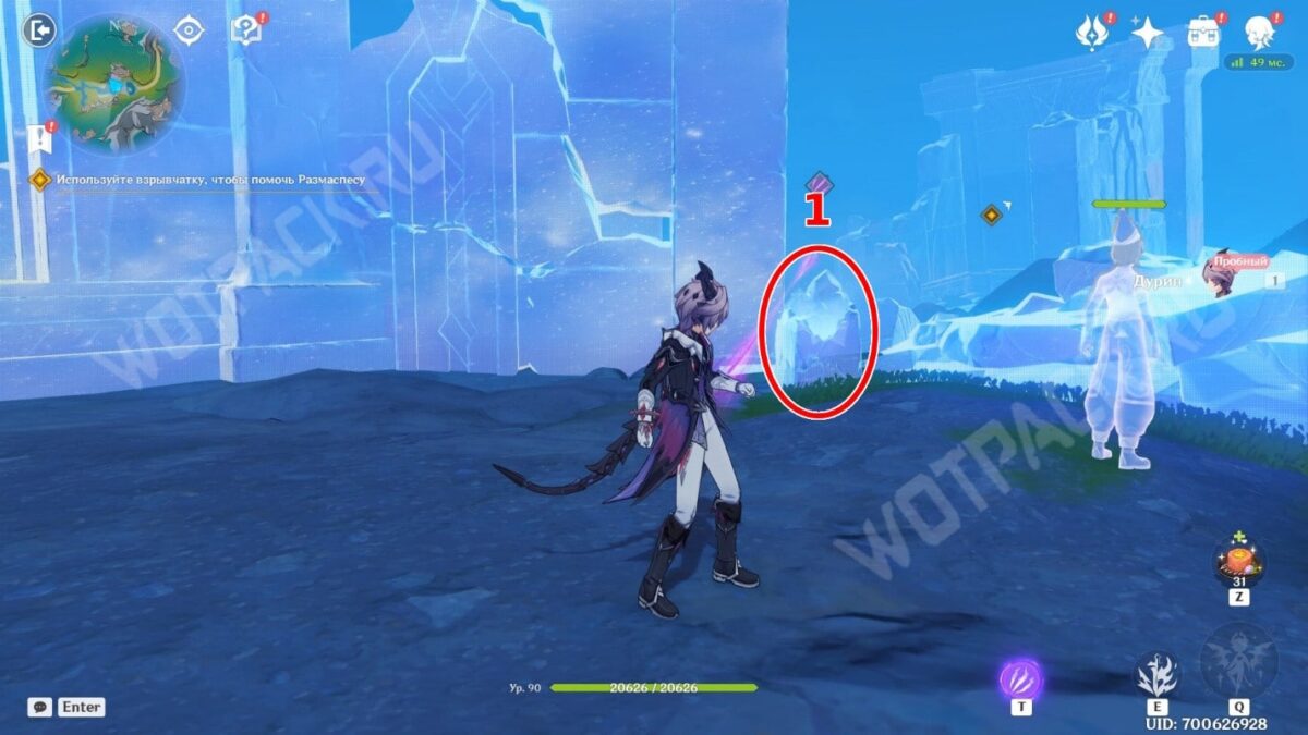 Когда фантом добежит до завала, преграждающего путь, откроется новая механика — воздействие на призрачные взрывные бочки. Сначала с помощью колонны слева создайте барьер, который не даст Размаспесу приблизиться, а затем устраните препятствия, активировав взрывчатку.