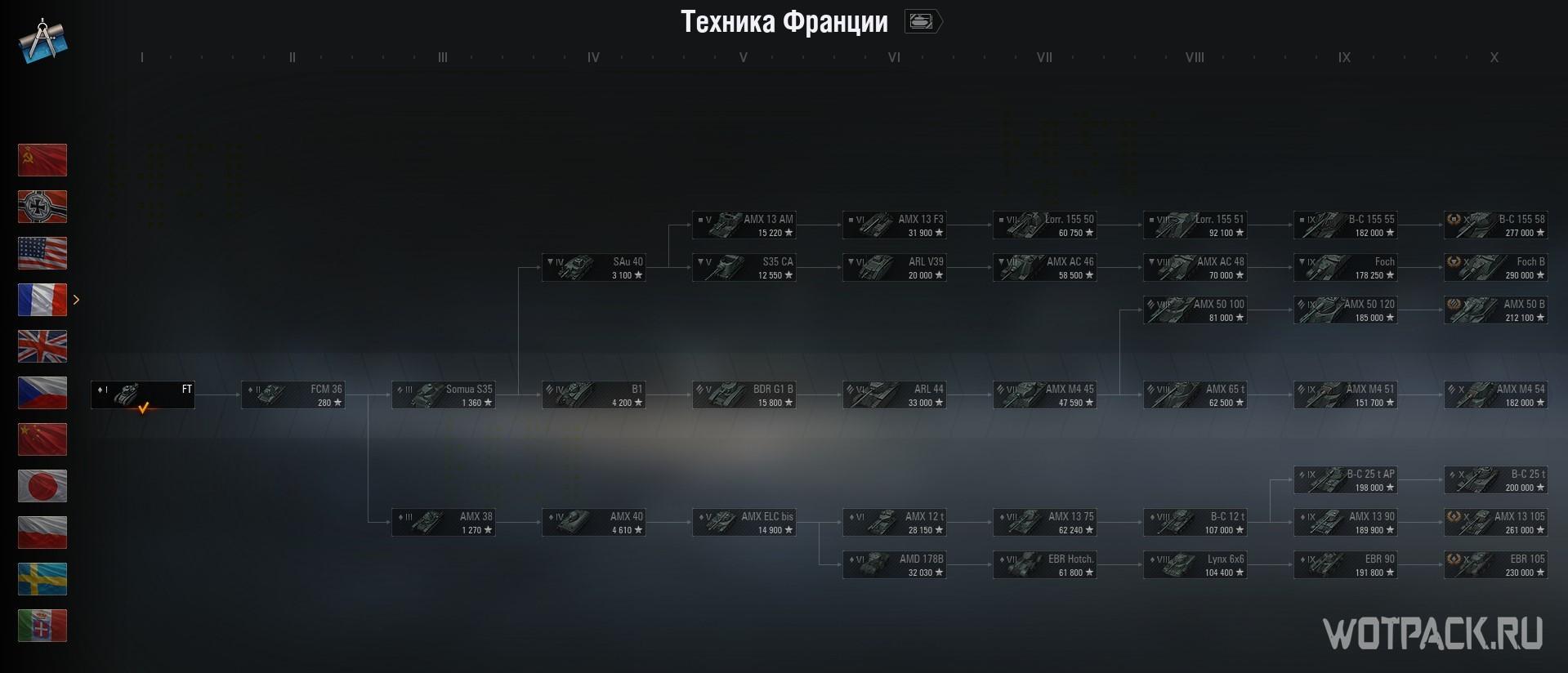 Самая существенная потеря среди французской техники — вывод альтернативной подветки средних танков, которая начинается с 9 уровня AMX 30 1er prototype и AMX 30 B. Оба сейчас не актуальны в современном рандоме, хотя «девятка» играется по приятнее, чем топ ветки. А вот «десятку» уже собирались апнуть, даже есть заготовки новых ТТХ. Так что не исключено, что параметры техники улучшат после ее перевода в акционную.