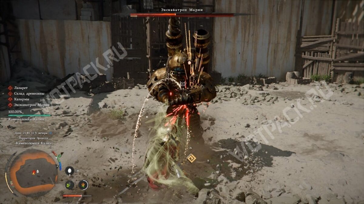 - Оглушайте робота ударом пальмары, когда он пытается зарыться под землю.