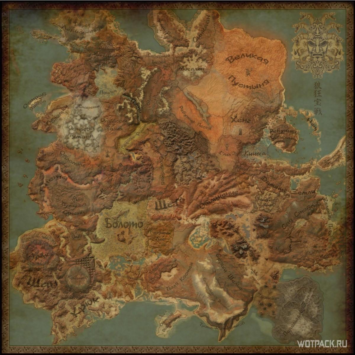 Общая карта отображает весь мир Kenshi. На ней есть метки, указывающие местонахождение городов, небольших поселений, станций, шахт, руин, лабораторий, баз и многого другого. Обращаясь к изображению выше, можно сориентироваться находясь в любой точке игрового мира.