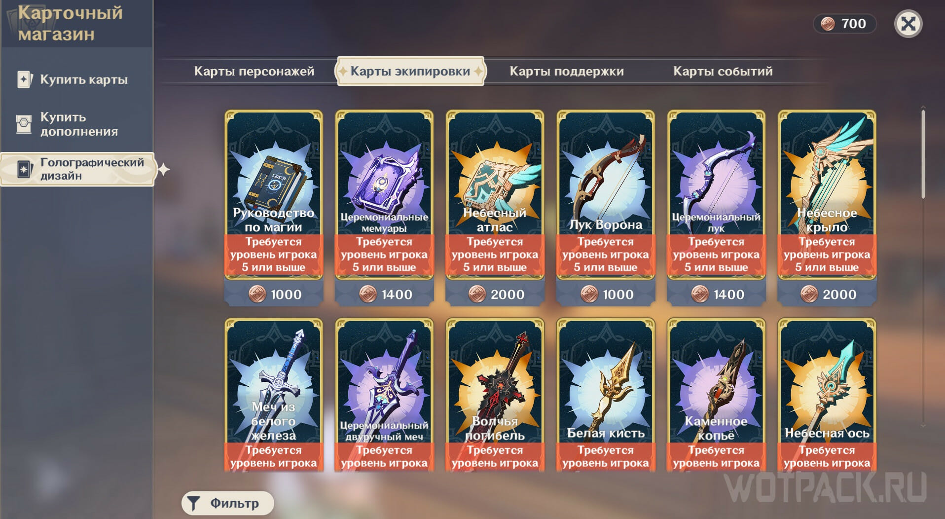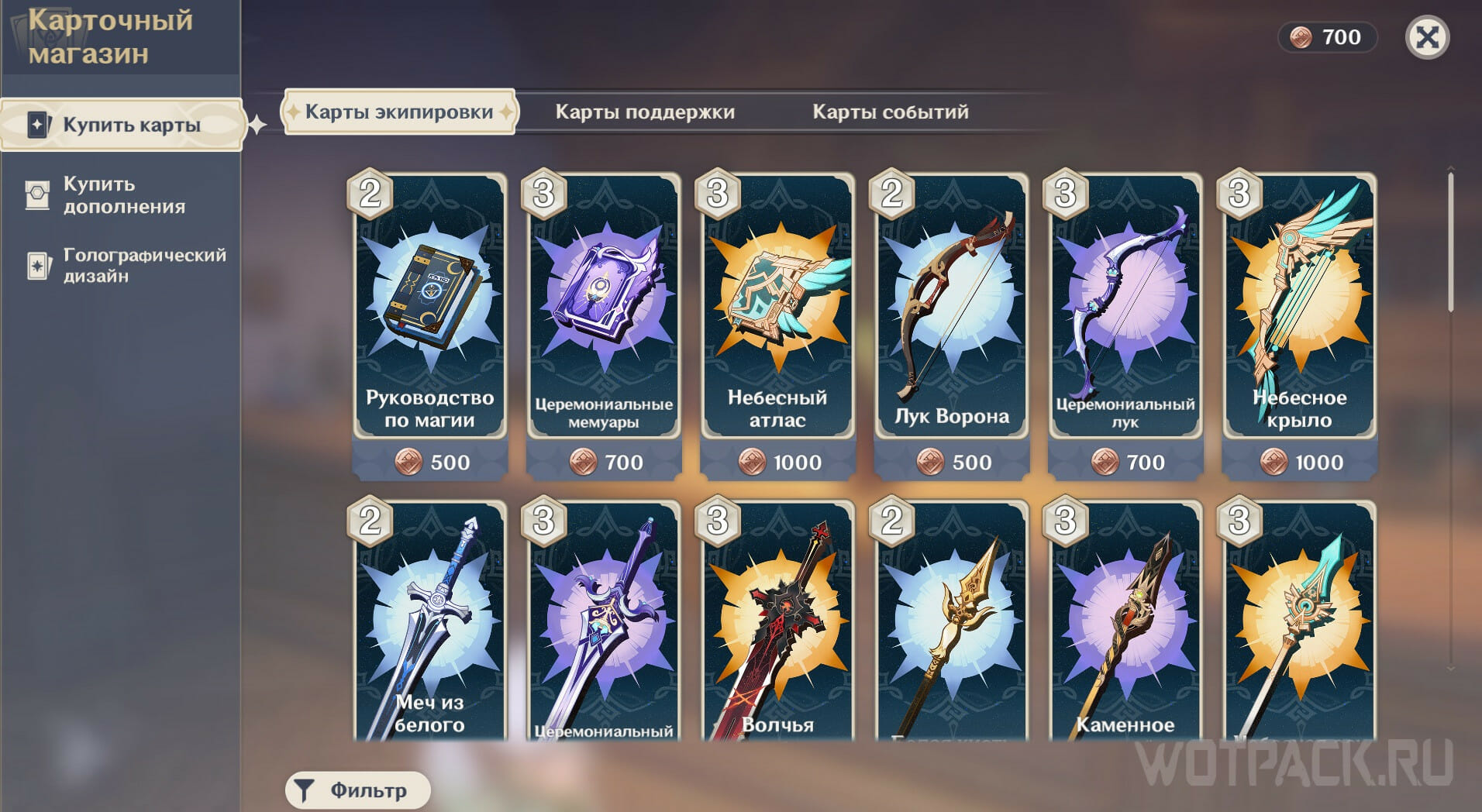 - Можно купить голографический дизайн только той карты, которая уже есть. В этом разделе нельзя приобрести сами карты.