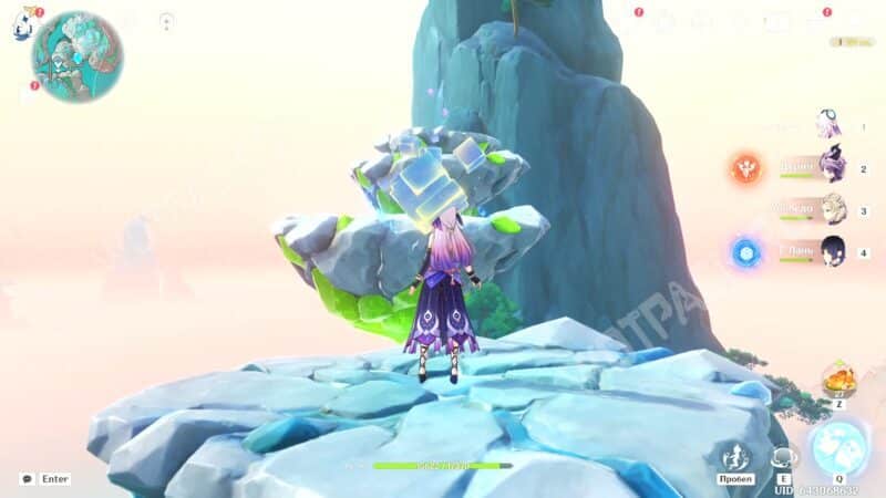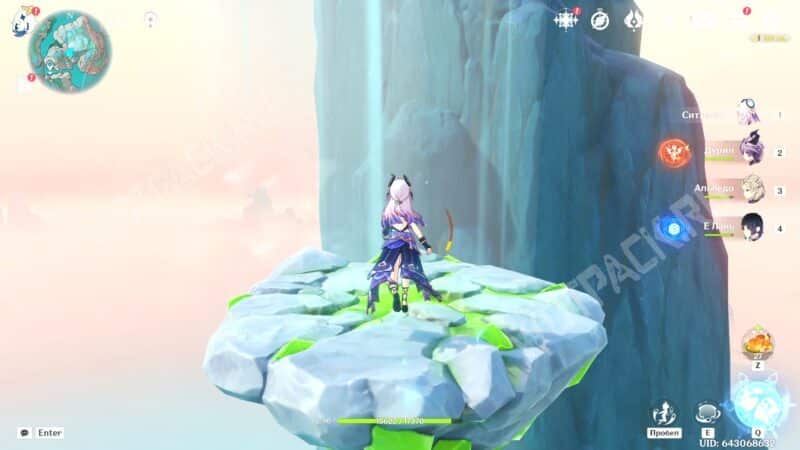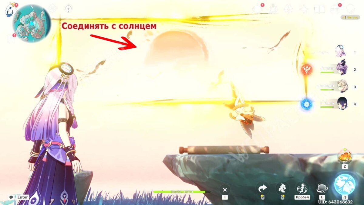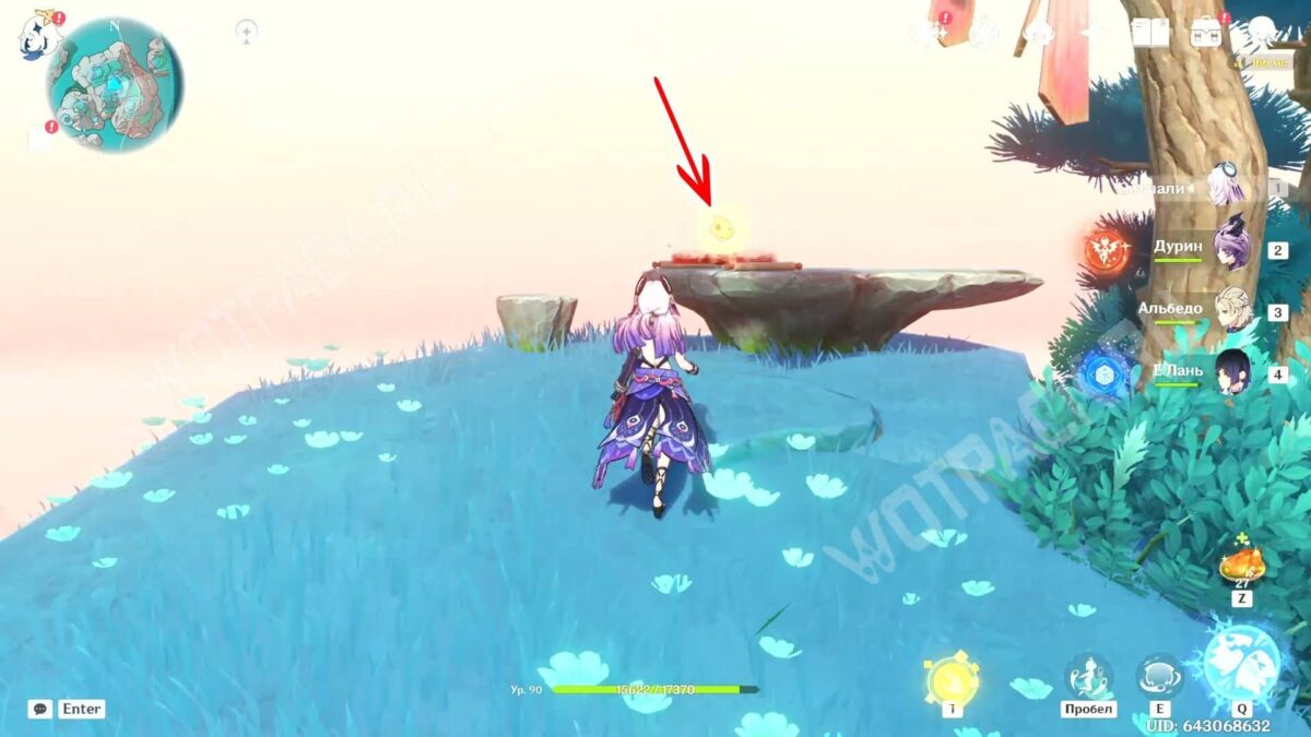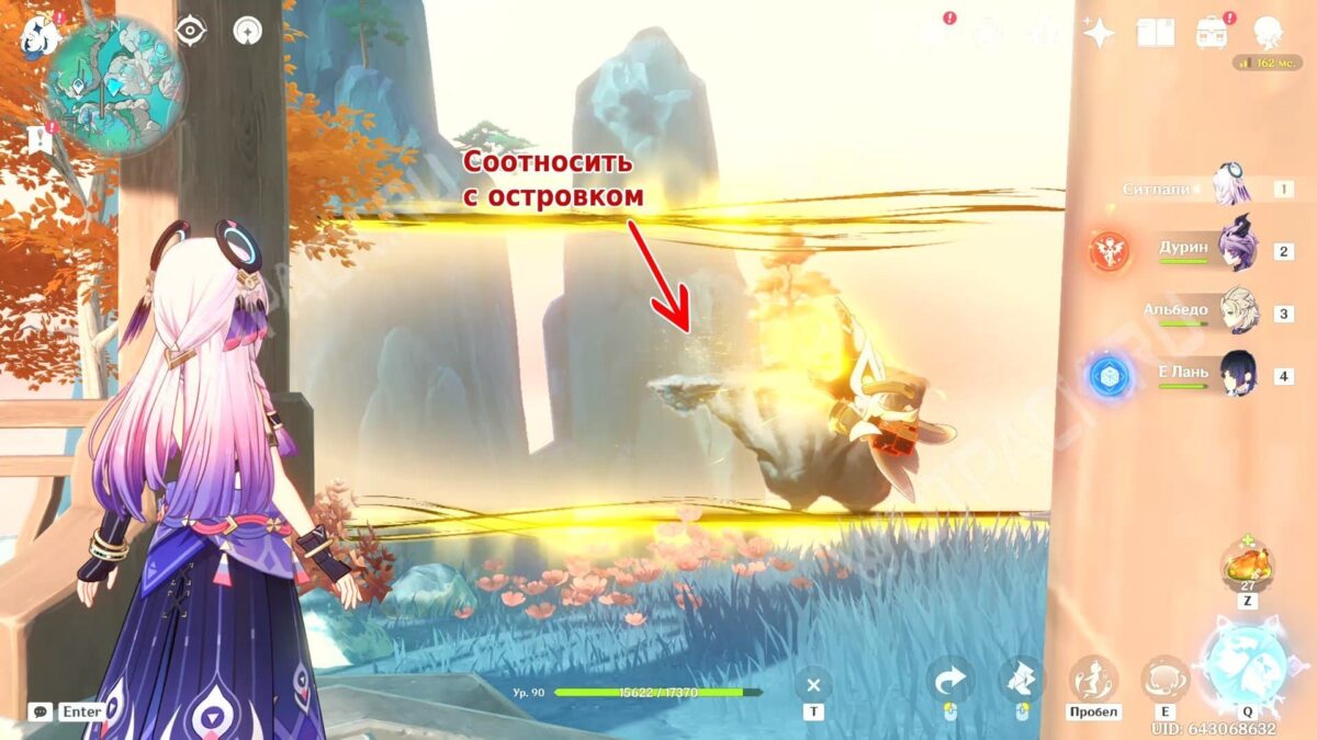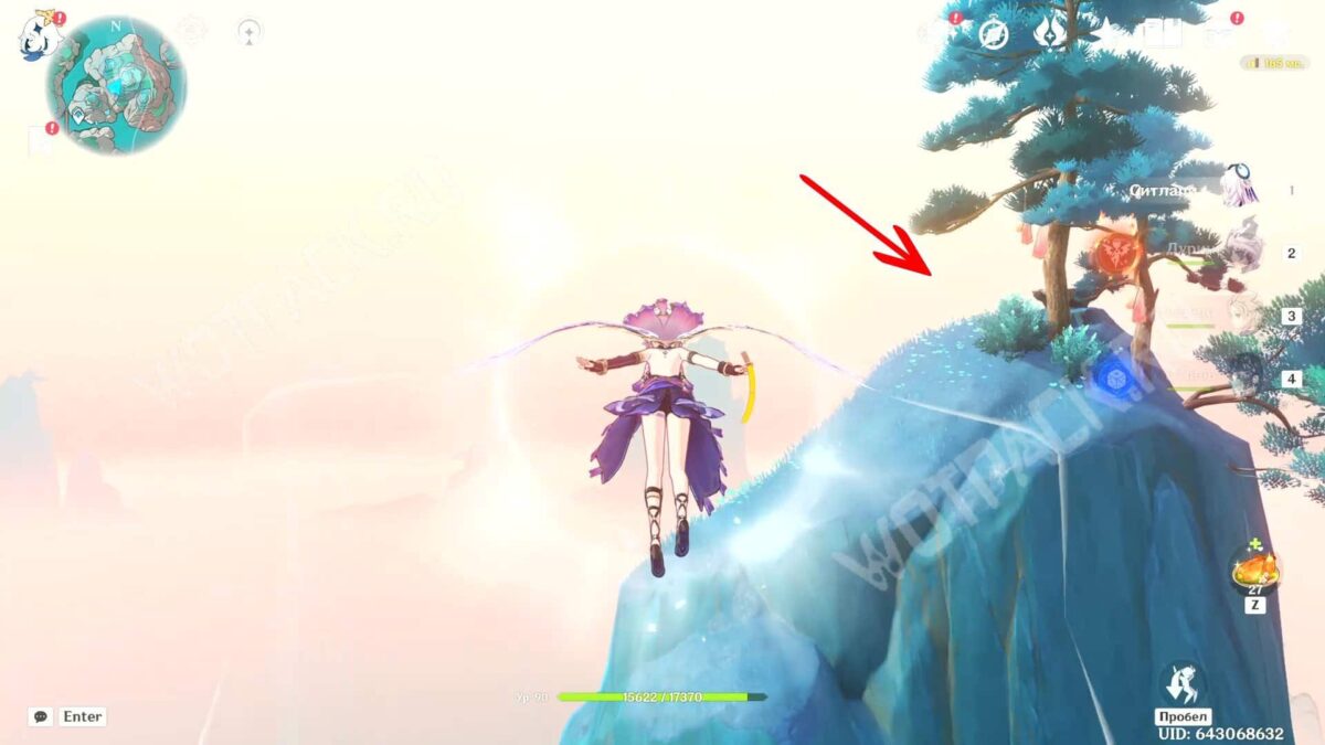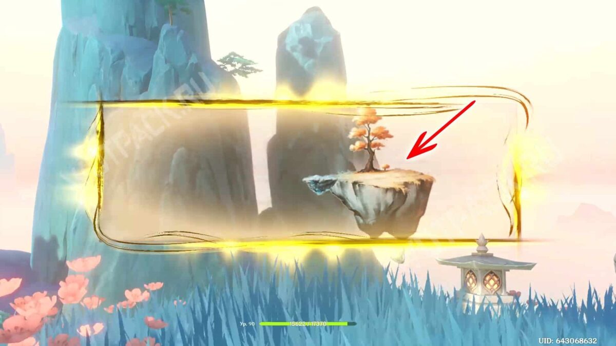 Поднимите картину с помощью Декса и развернитесь на восток. Изображение нужно сопоставить с парящим островком, на котором растёт дерево.