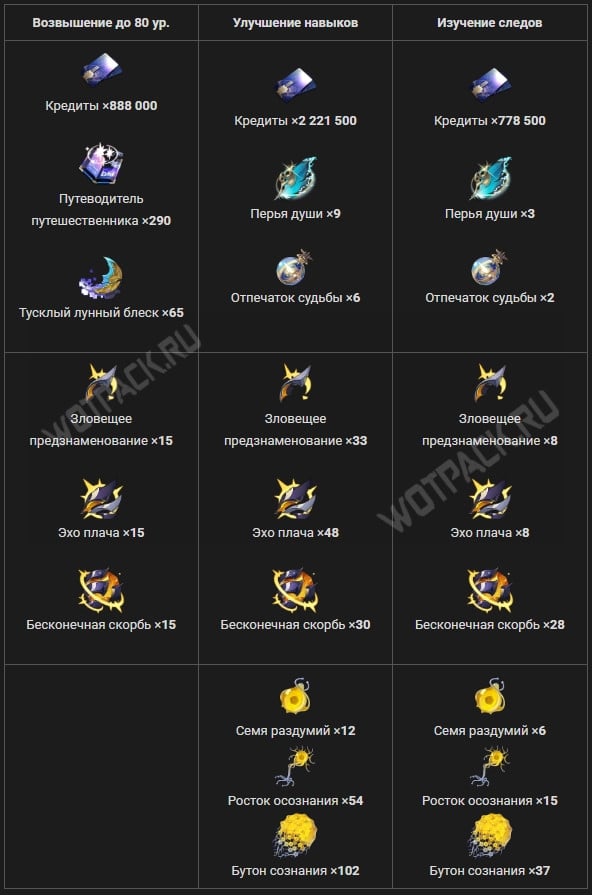 Прокачка всех следов с характеристиками обеспечит следующий итоговый прирост: