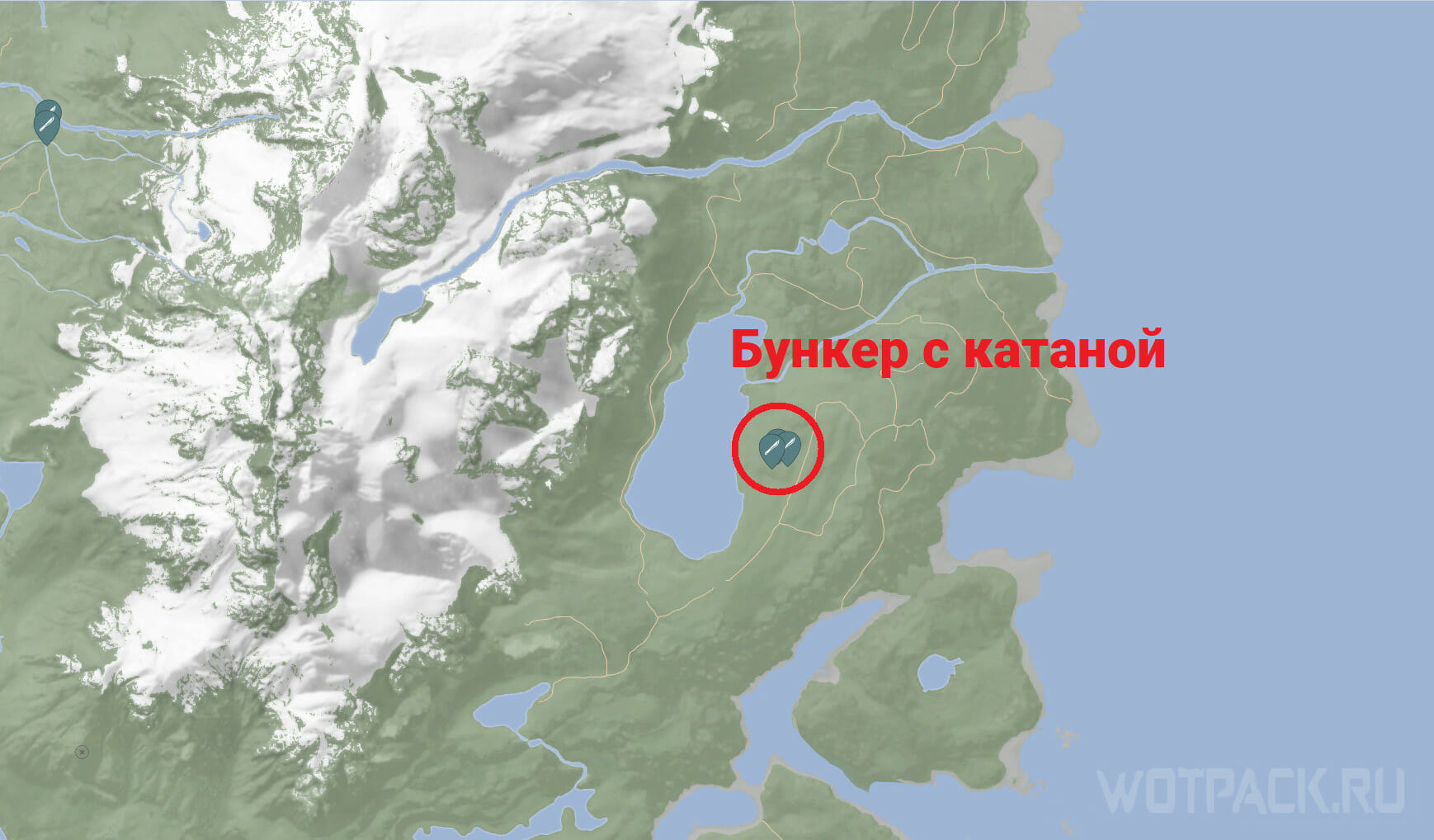 Единственный способ получить катану – посетить бункер в восточной части острова, находящийся на правом берегу крупного озера. Добравшись к нужным координатам, отыщите расщелину в скале, которая позволит проникнуть в пещеру и продвинуться к нужному помещению.