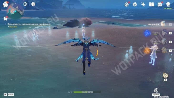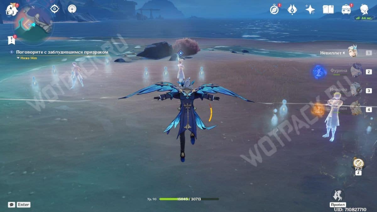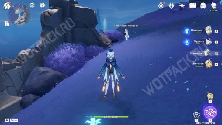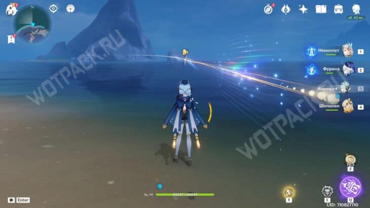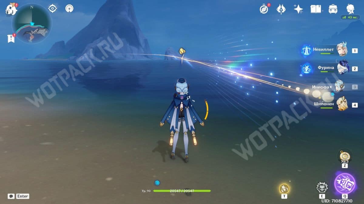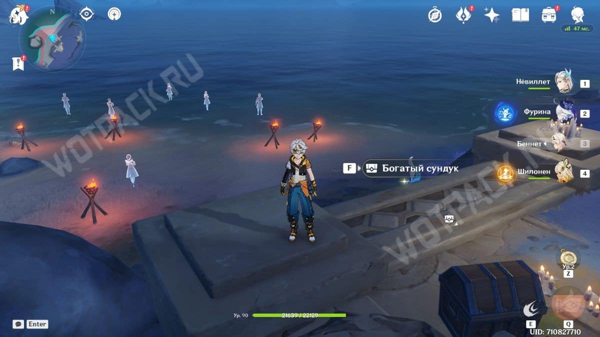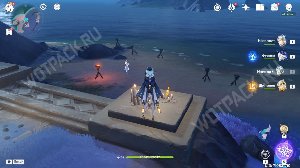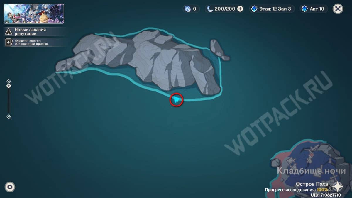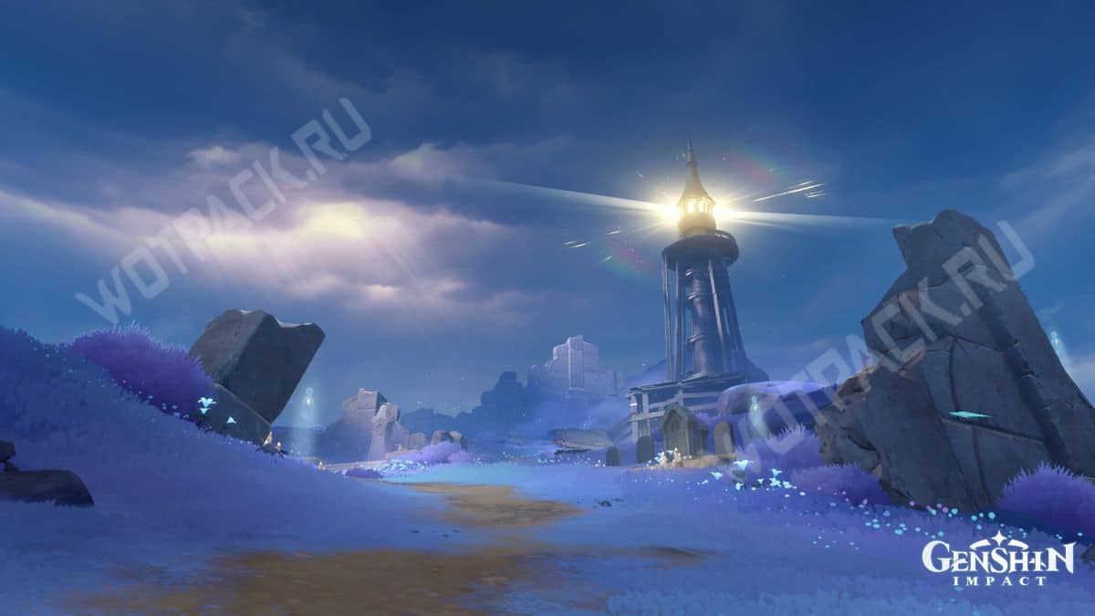 Чтобы попасть туда, где находится один из фонарей клятвы, нужно воспользоваться лунным путем на севере от маяка. Нажмите «Т» у светящейся линии и превратитесь в куухенки, чтобы добраться до отдаленной точки. Также можно использовать способности Архонта Фурины или, например, гида Муалани. Кроме фонаря, на острове ничего нет, однако это может измениться в будущих обновлениях.